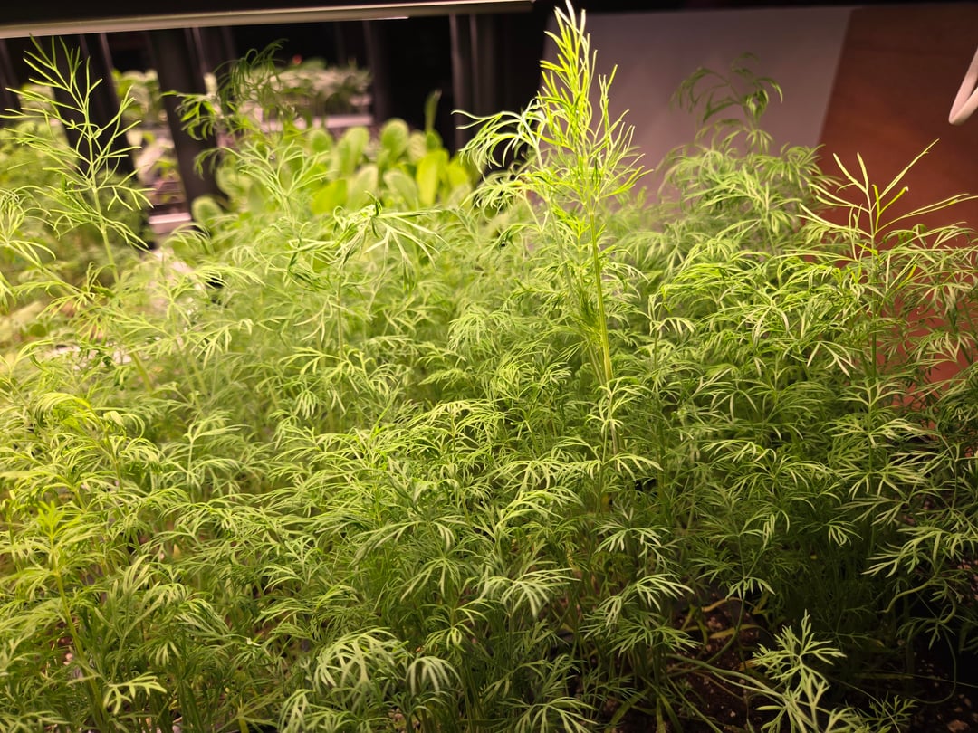 ディルはコンパクトで直立した状態を保ち、制御された条件に完璧に反応するため、屋内で非常によく育ちます。紫白色 LED 栽培ライトの下では、安定した栄養成長には 14 ~ 16 時間の光サイクルが理想的です。バランスの取れたハーブ栄養素(3-1-2または4-1-2の範囲のもの)を10〜14日ごとに軽く与えることを好みます。土壌は軽く湿った状態に保たれ、決して湿っていてはならず、根の周りの空気の流れが良好である必要があります。屋内では風のストレスや気温の変動を避けることができるため、ディルは 40 ~ 60 日のライフサイクル全体にわたってまっすぐに、香り豊かに、生産的に成長することができます。