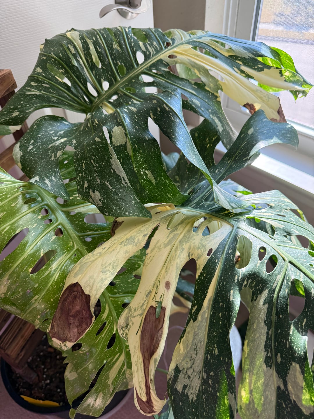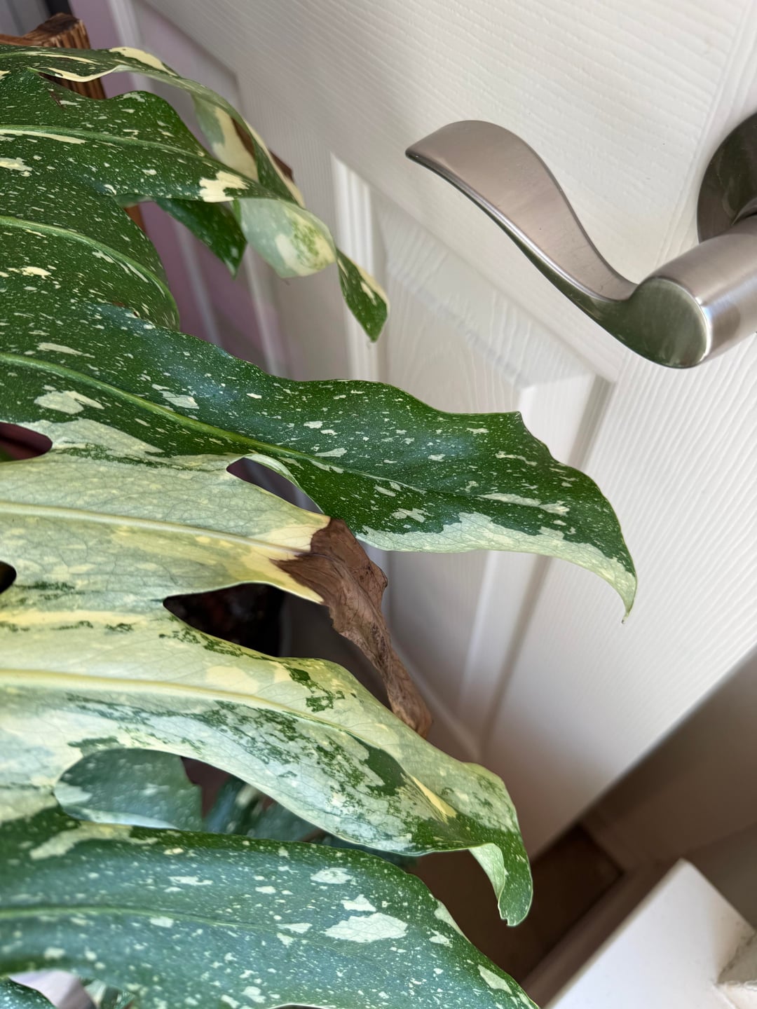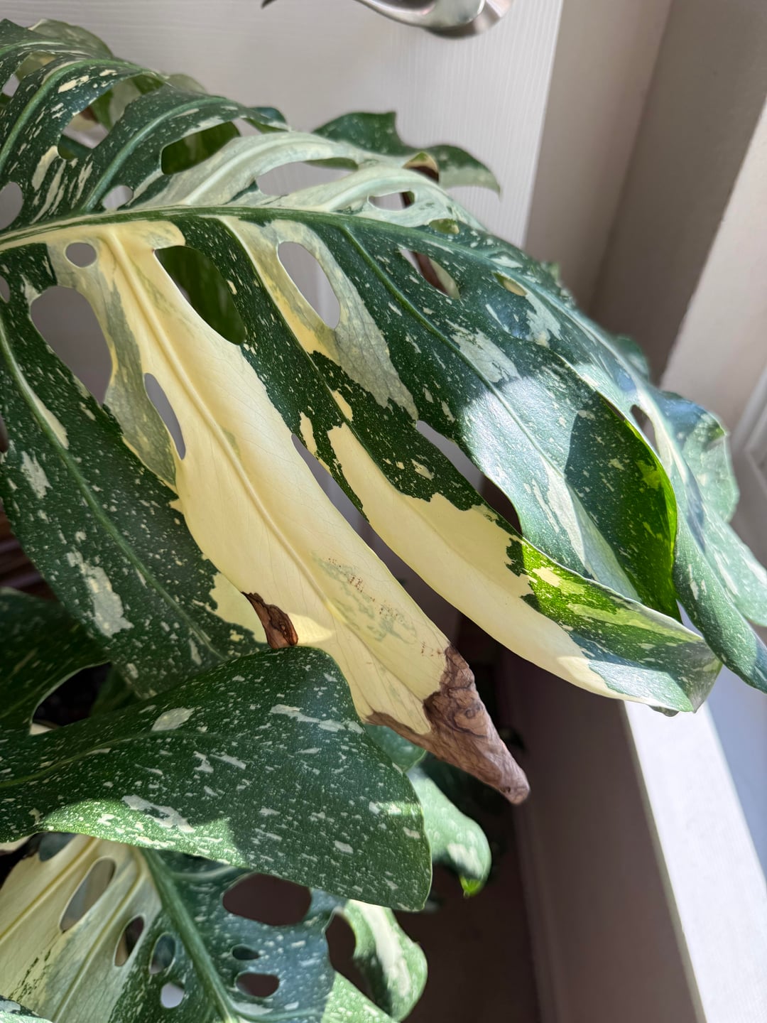 モンステラ タイの星座を飼っているのですが、葉の白い部分に奇妙な茶色の斑点があることに気づきました。バグですか?それとも何かが足りていないのでしょうか?