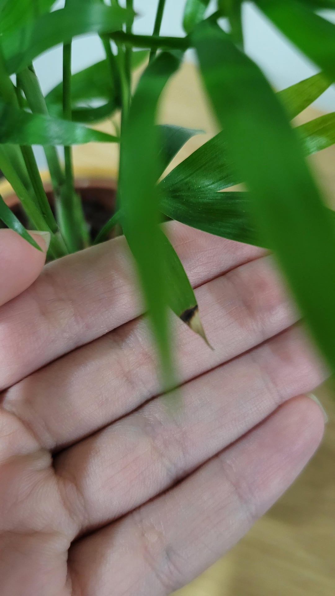こんにちは、私は数か月前にこの植物をIKEAから購入しました。最近、葉の先が黒くなっていることに気づきました。まだ背も伸びて、新しい葉も出しているので、あまり心配していませんが、なぜこのようなことが続くのかわかりません。何かアイデアはありますか?