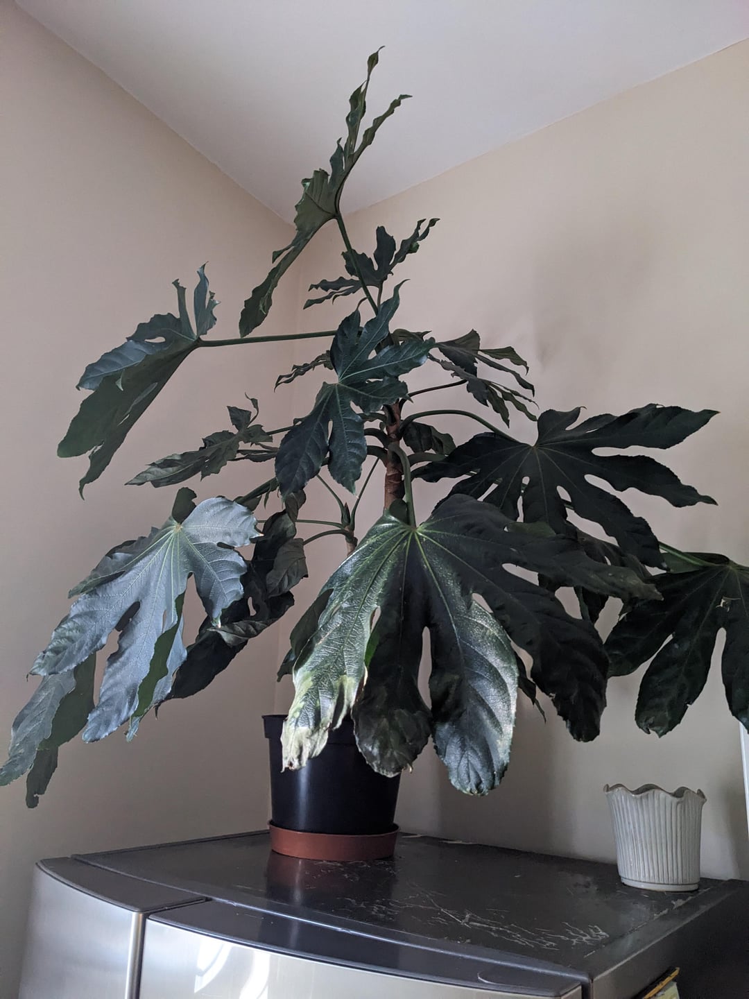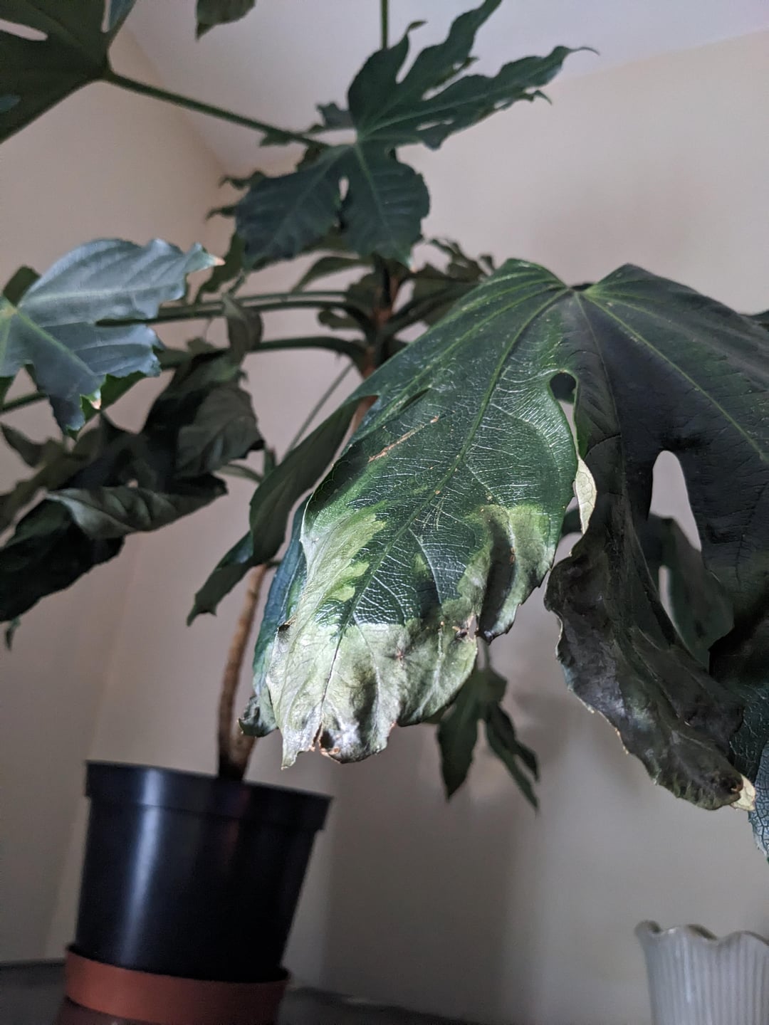さて、約 2 か月前からこの植物に水垢が付き始めましたが、私は約 2 週間前まで処理しませんでした (その前に水垢を拭き取っていました)。虫よけスプレー(Provanto)を手に入れましたが、あまり効果がなかったようで、それ以来、大量の葉が枯れたり折れたりし始めたため、状況をさらに悪化させた可能性があります。処理が遅かったからこうなったのか、それともこの植物にはスプレーが合わなかったのかわかりません。