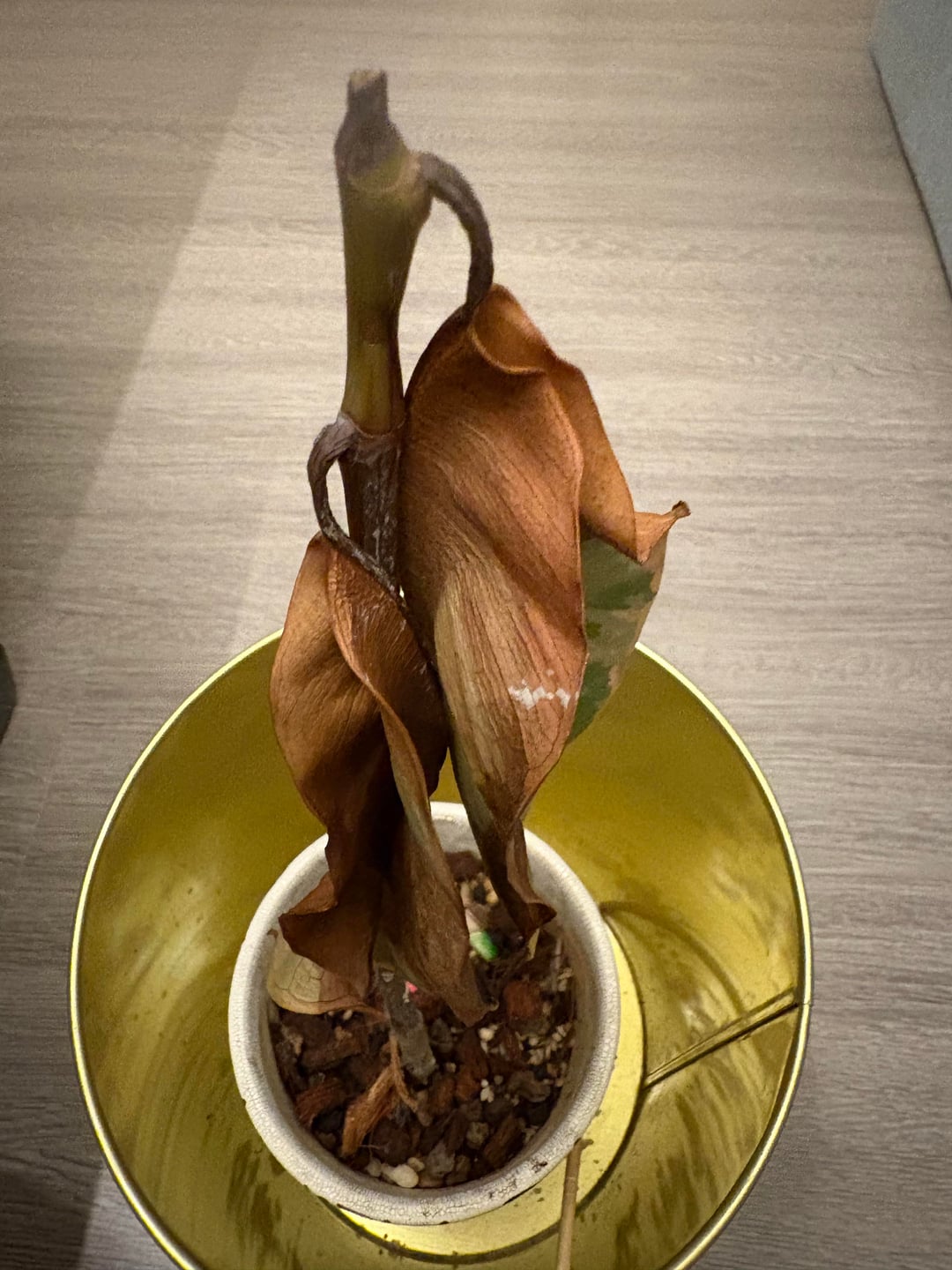 おそらく私のゴム工場に関する最後の投稿です。茎は柔らかくなり、植物はほぼ枯れています。最後の緑色の部分を水に入れて繁殖させることは可能ですか?それが機能する可能性は少しでもありますか?