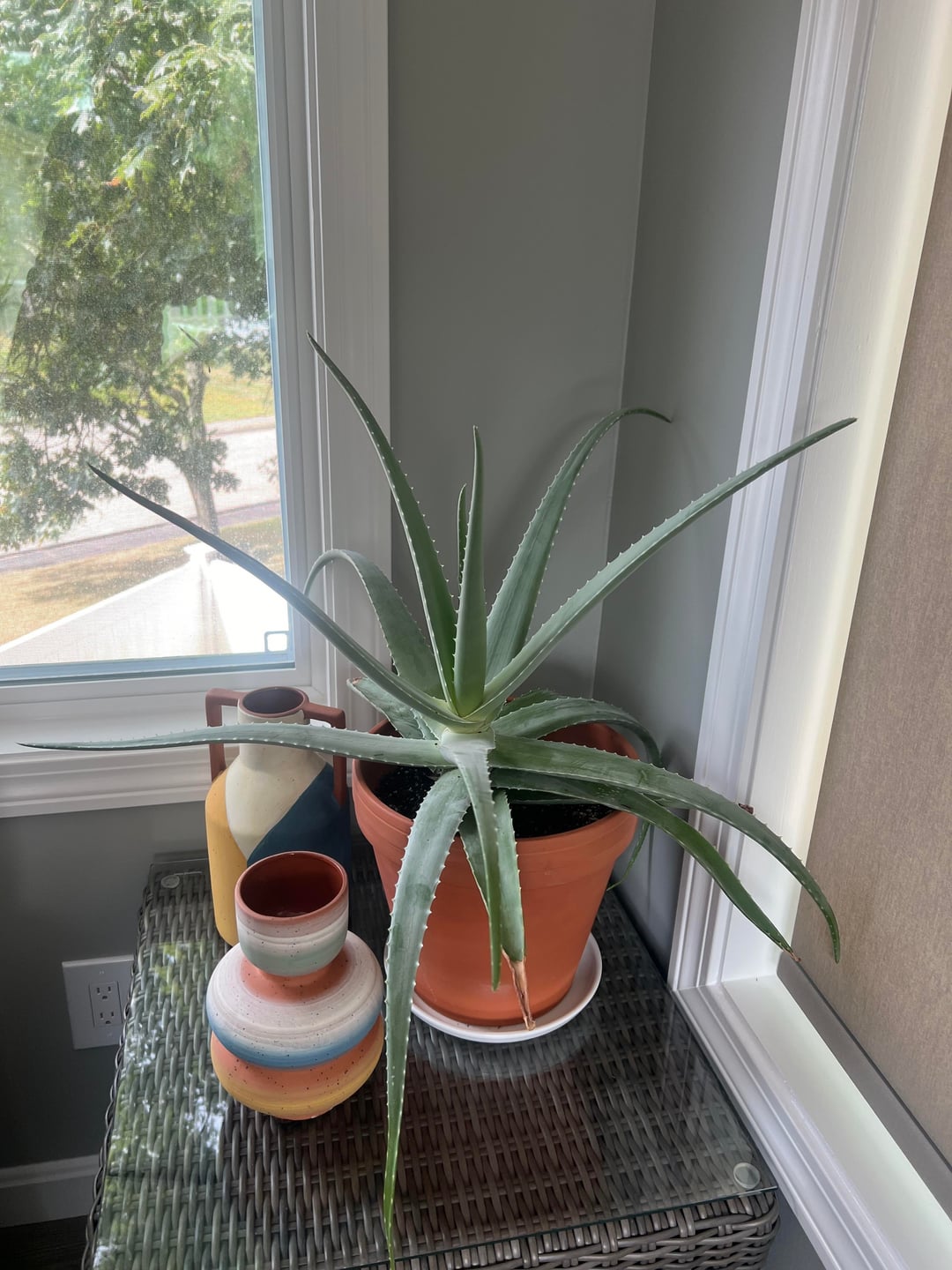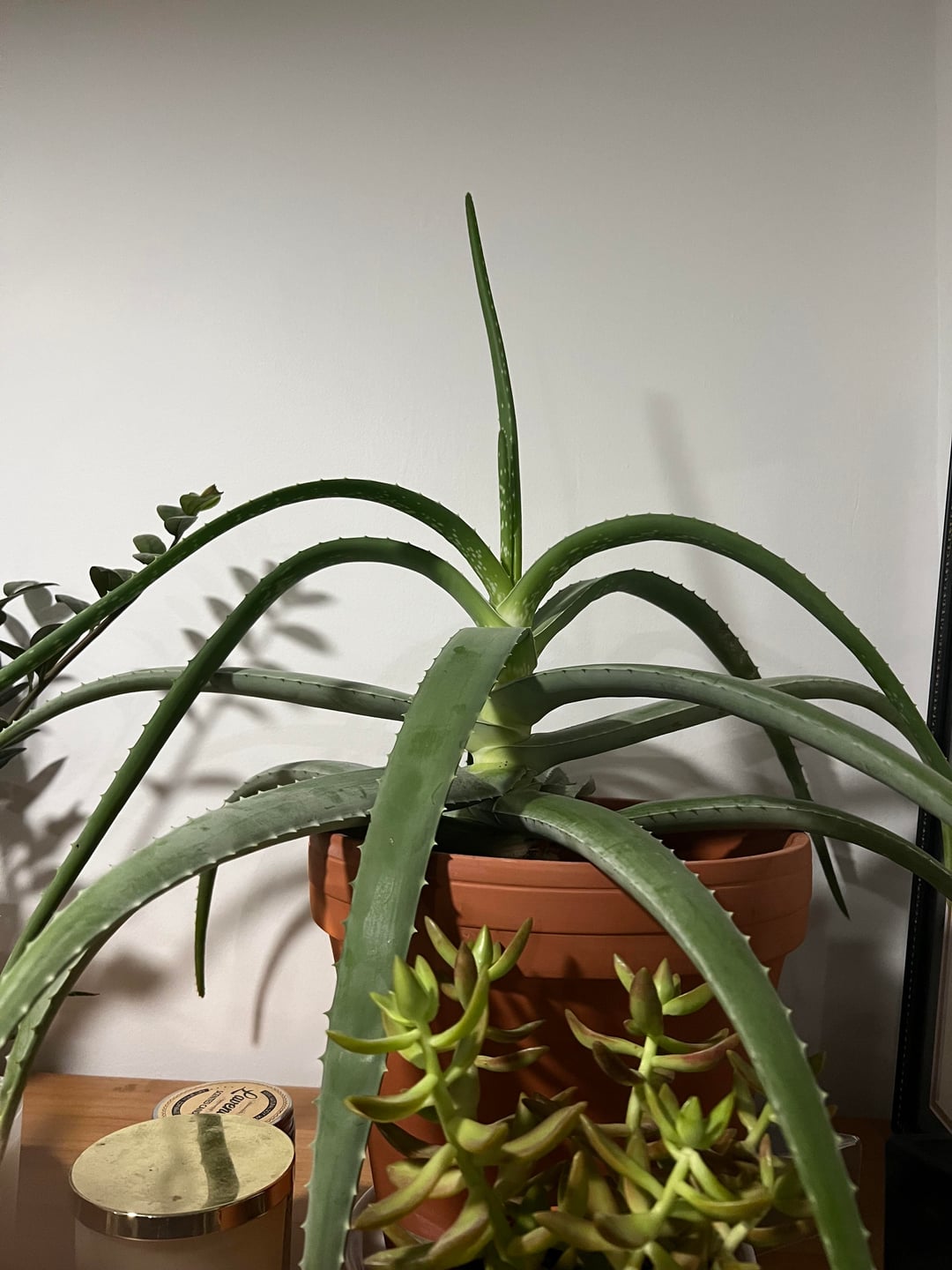 うちのアロエベラの葉は以前は直立していましたが、今は垂れ下がっています。これは水やりの問題でしょうか?光の問題? 1枚目の写真は今、2枚目は数ヶ月前の写真です