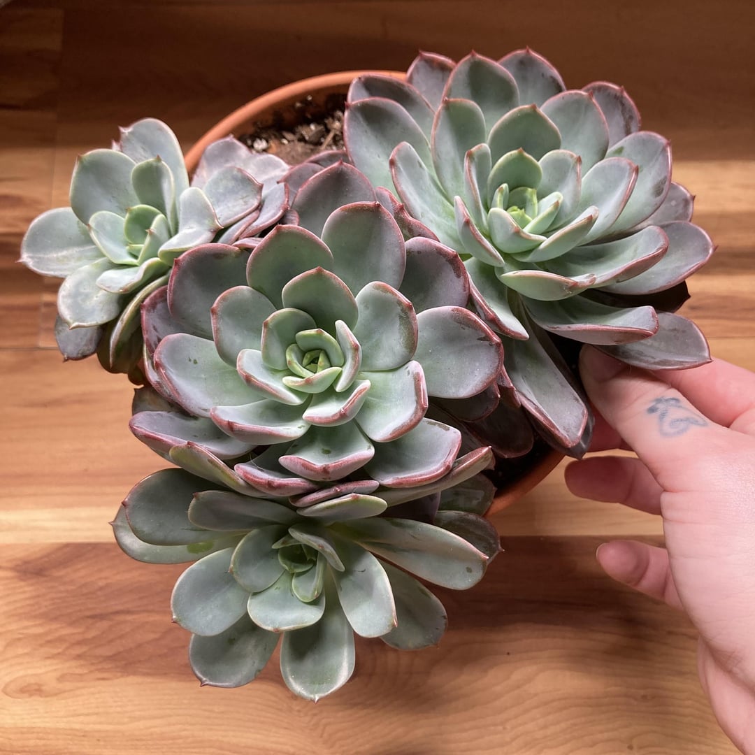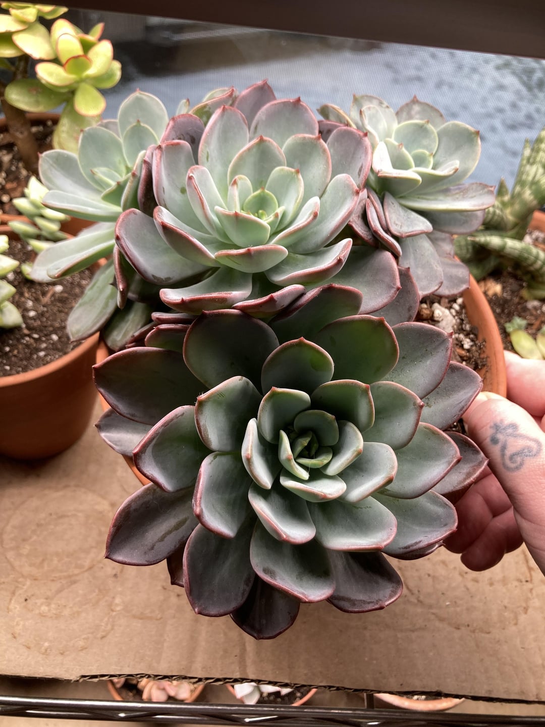 写真 1 と 2 は今日 (1/16/24) のものです。 写真 3 は 2023 年 1 月 14 日のものです。 写真 4 は 2022 年 11 月のもので、当時、それらは私の小道具トレイにある小さな小道具にすぎませんでした。 当時はIDがわからなかったので「Wonky Echeveria」と呼んでいました。 私は母株を持っていましたが、私が彼女を手に入れたとき、彼女はひどい状態でした、そして幸運なことに、これは今では簡単に私のトップ3のお気に入りの多肉植物の1つであるため、幸運なことになんとか支柱に2枚の葉を手に入れることができました。 初めての繁殖で花が咲きました。 最後の写真は2023年9月のもので、茎が2本ありました。 もう一頭も花が咲きました。 1歳くらいから咲き始めたと思います。 🤗🥰