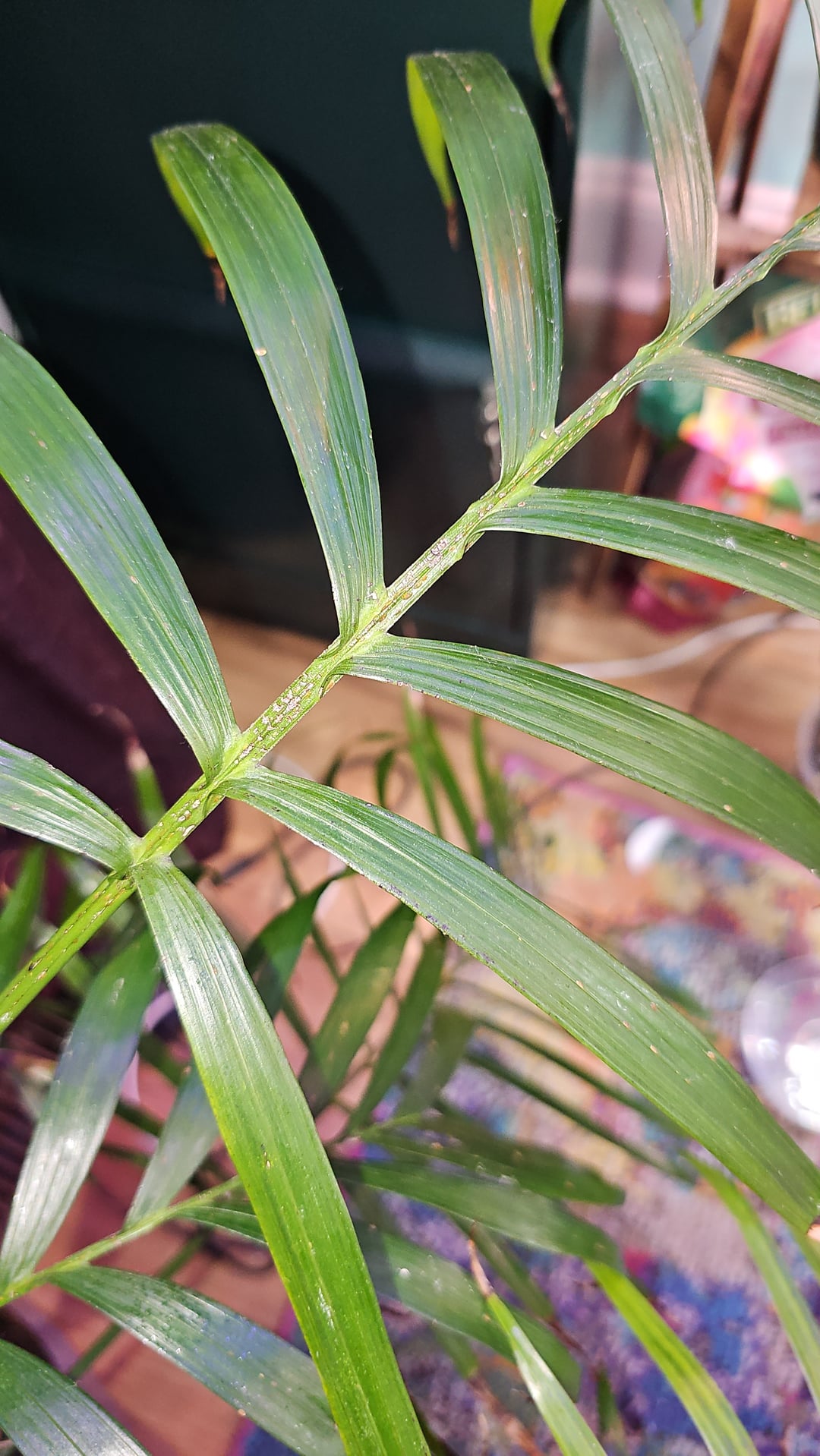 新しい葉が成長しているのに沿ってシミの斑点があることに気づき、葉を詳しく観察するようになりました。これまでカイガラムシを見たことはありませんでしたが、観葉植物とそれらに影響を与える害虫に関する本に載っていたものに似ています。