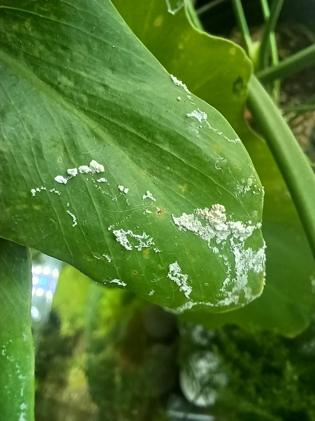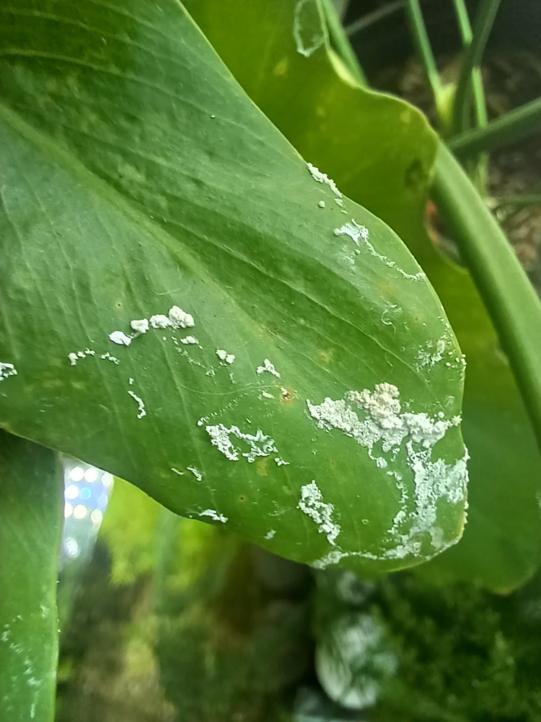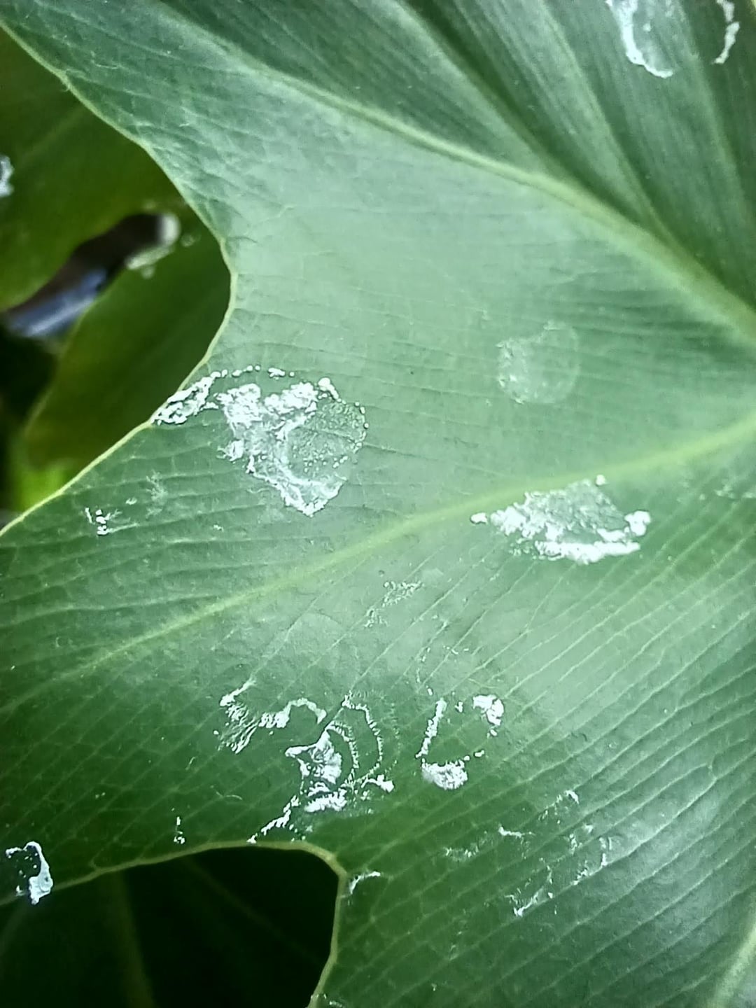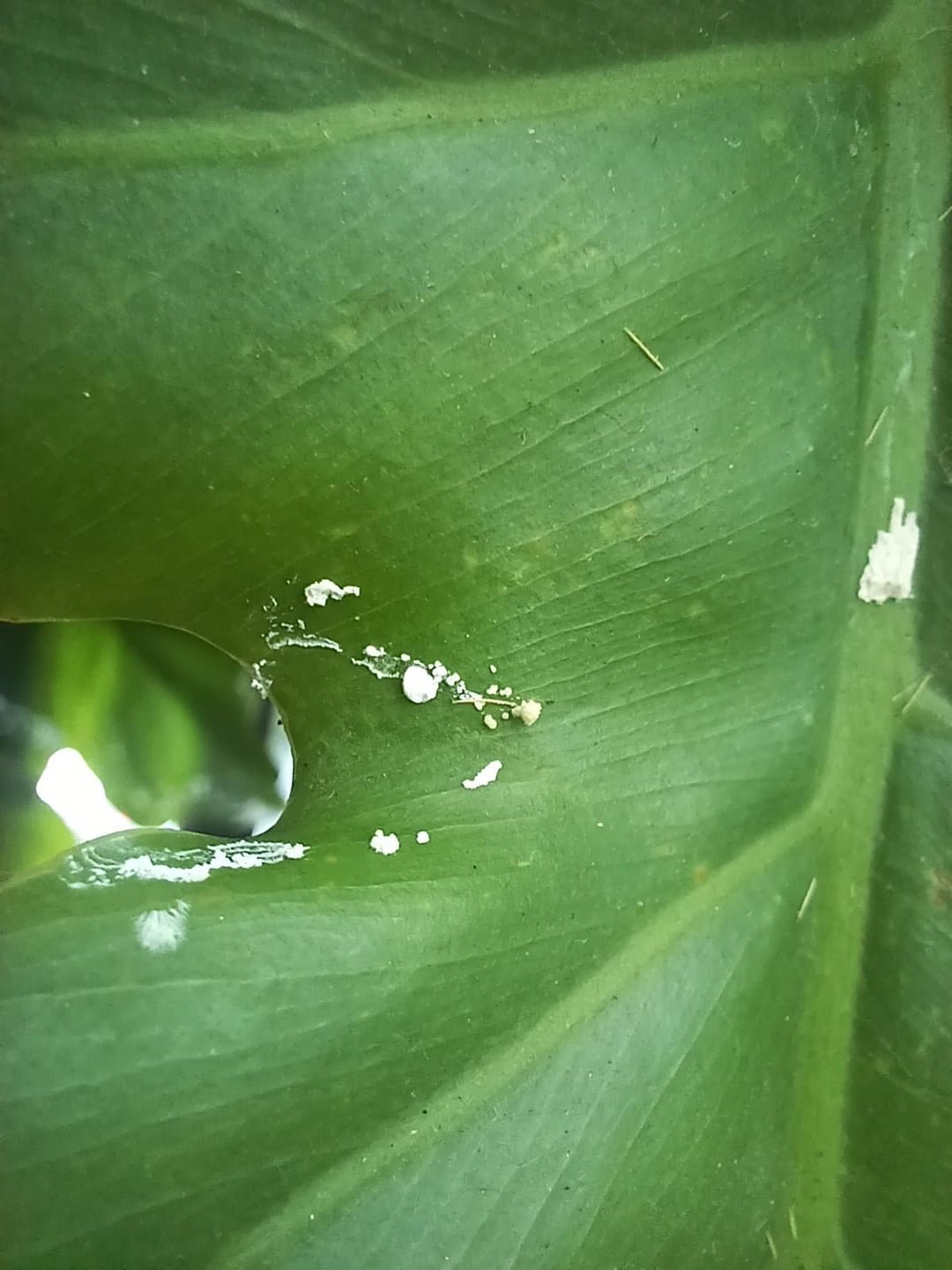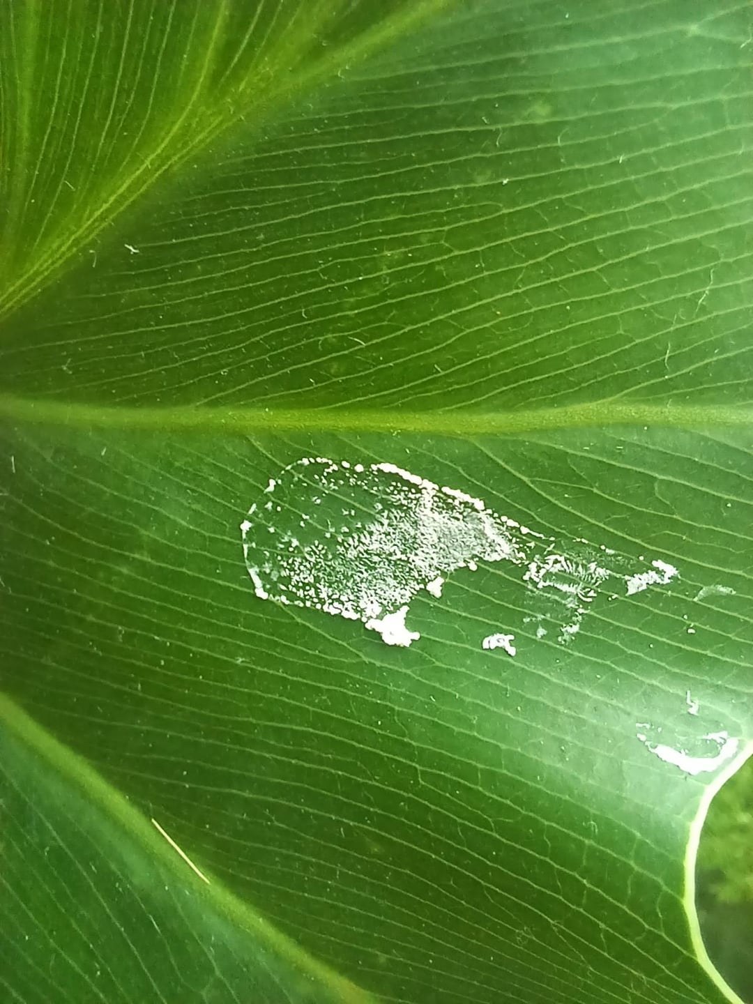 それはある日突然現れました、何かが滴ったように見えます、その上の窓にはクモの植物がぶら下がっています。チョーキー/クリーミーな感じで、こすると簡単に落ちます。これは何なのか、また懸念すべきかどうか何か考えはありますか?