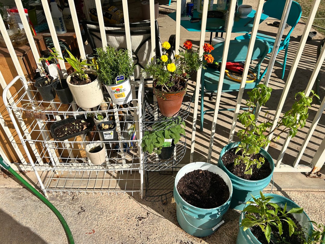 この庭の半分は5月に作り始め、残りは10月に始めたので、それほど素晴らしいものではありませんが、この春にはもっと大きくすることができます。私はアリゾナ州フェニックスのゾーン 9b/10 にいます。 5月にトマト、バジル、トマティージョ、生姜、ハラペーニョ、スイカの栽培を始めましたが、トマトとスイカはなかなか進まなかったので、ミント、ペパーミント、マリーゴールド、マタタビ、ローズマリージャガイモ、レタス、キャベツ、芽キャベツ、スイートピー、ネギ、タマネギ、そしてまだ発芽していないエンドウ豆の栽培を始めました。私の他の植物を見たい場合は、他のサブレディットに投稿した私のページにそれらを掲載しています。