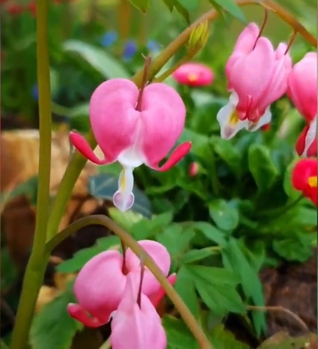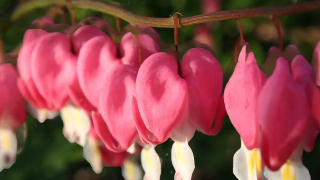 ブリーディングハートフラワーは、アーチ状の茎から垂れ下がった小さなハート型のピンクまたは白の花を持つ繊細な植物です。春に咲き、多くの場合愛と思いやりに関連付けられています。