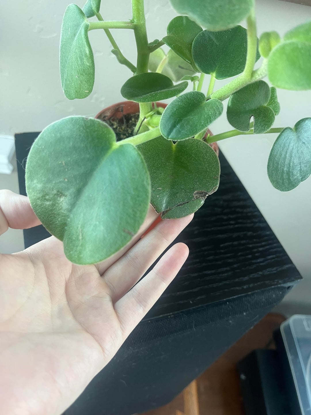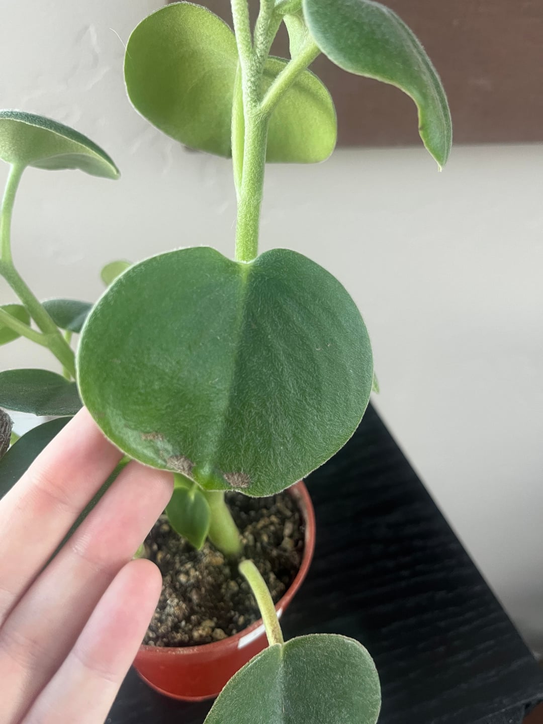 こんにちは、みんな!先週、初めての植物(フェルトペペロミア)を購入したところです。彼女を家に連れて帰ってから、茶色の斑点ができ始めていることに気づきました。再び健康的に見えるようにする方法について何かアドバイスはありますか? 部屋は64度に保たれています。できるだけ多くの間接光を当てて(私たちはアラスカに住んでいます)、家に持ち帰ってから水やりは1回だけです。