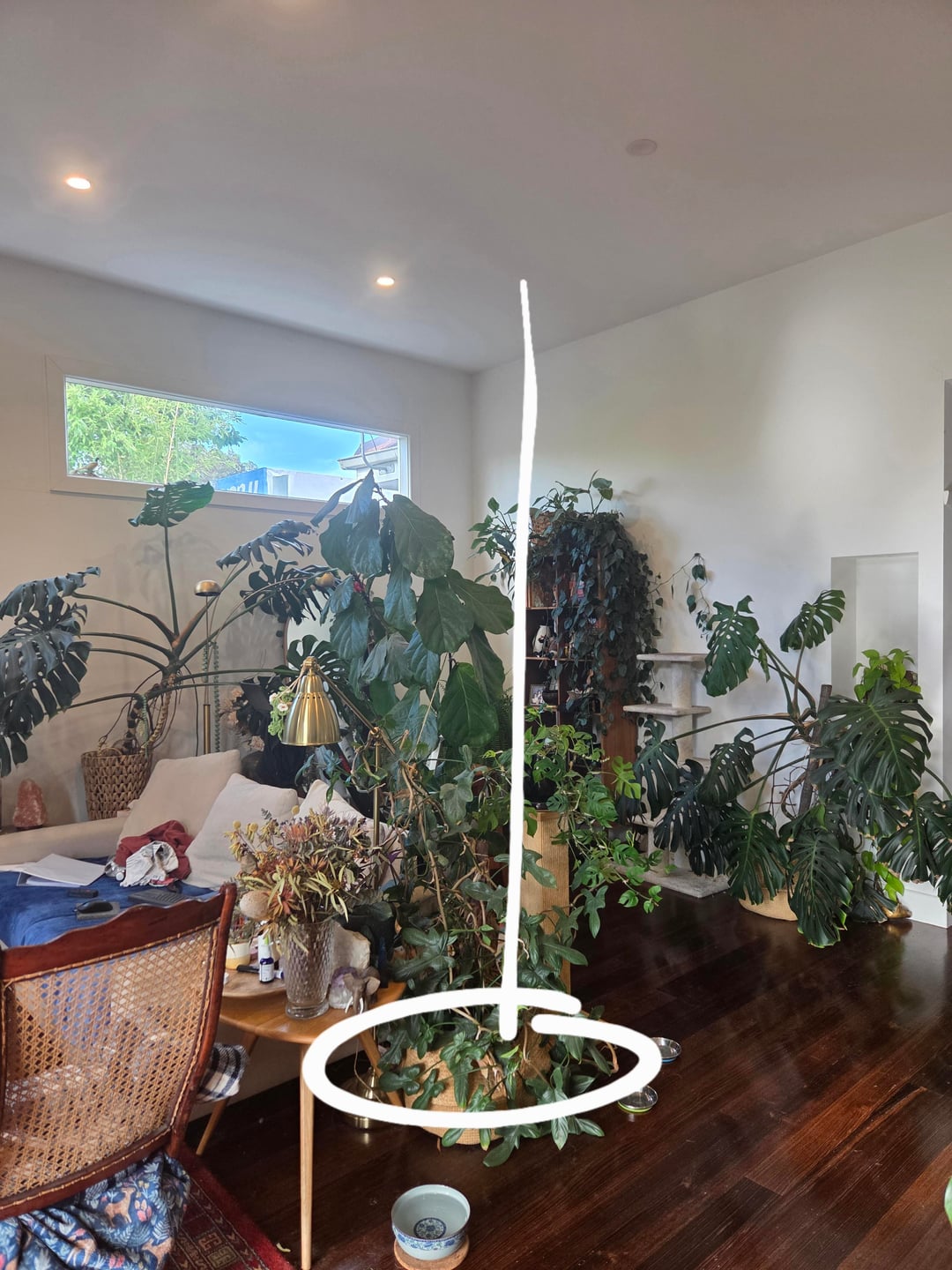 オープンプランのリビングスペースの中心に置くかなり大きな木や植物を探しています。