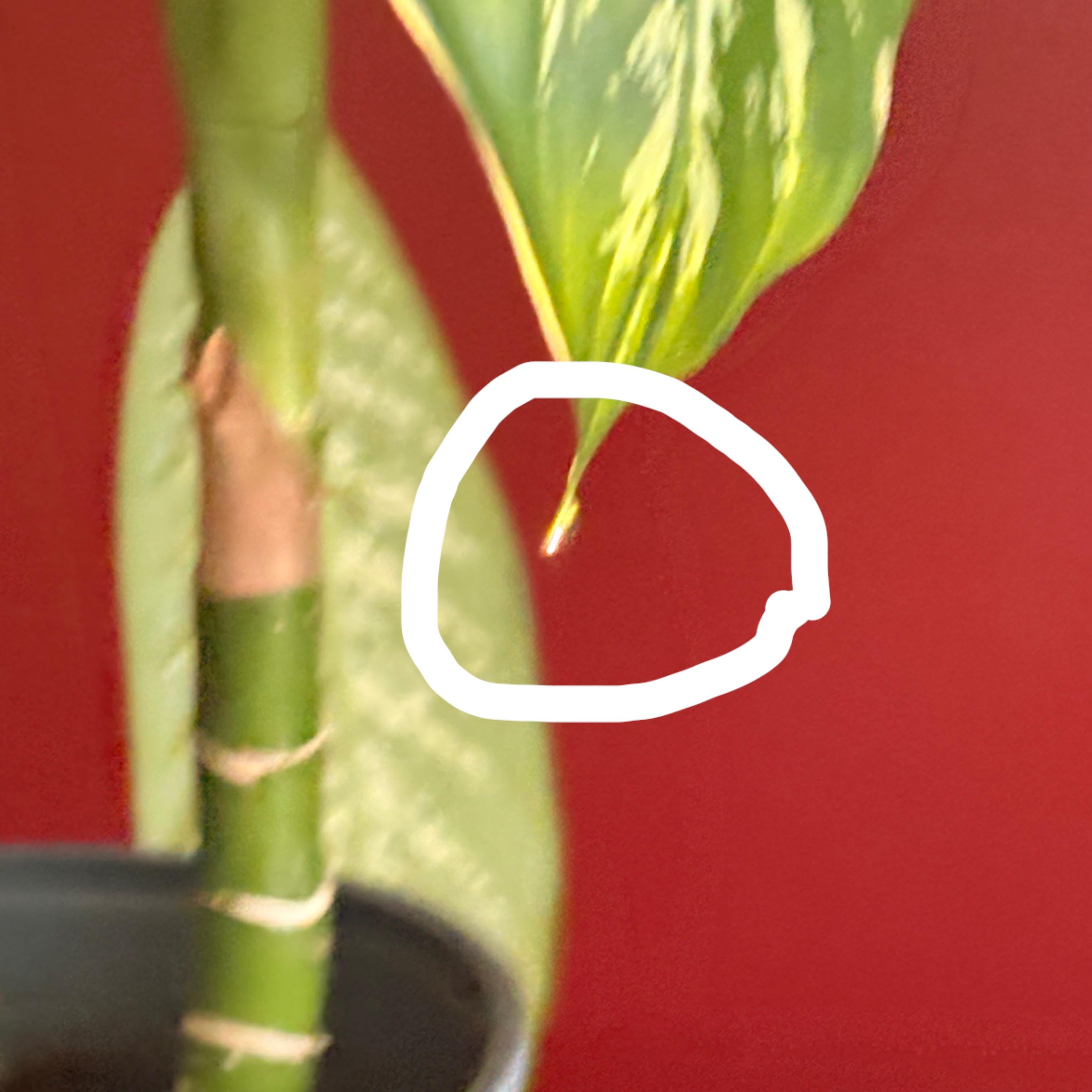 写真でははっきりしているかわかりませんが、今朝起きたら、私の植物の葉の端に樹液の滴が付いていました。これらの植物に樹液があることは知っていますが、このように目に見える形で見たのは初めてです。