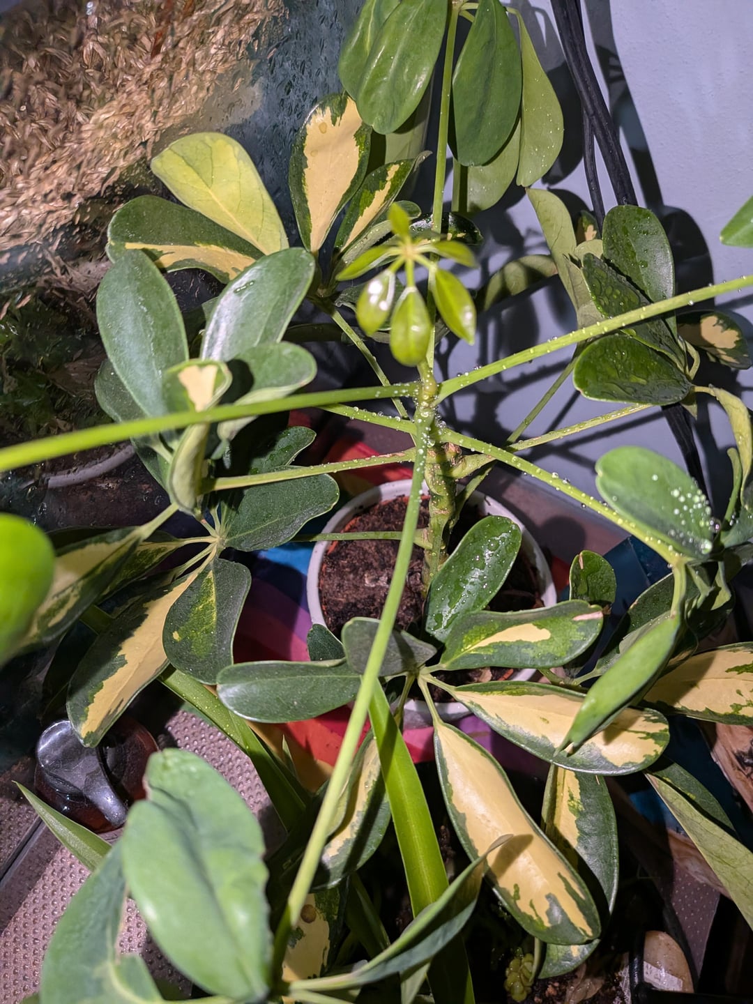 傘の植物を飼うのは初めてですが、少し貧しいかもしれないと聞いて、最善を尽くしています。私は植物飼育コミュニティにはまったくの初心者で、これまでのところヘビ植物、クモ植物、金粉ドラセナなどのより丈夫な種しか飼育していません。最近では感謝祭のサボテンやペンシルプランツなどの多肉植物に興味があります。 Googleで見たとおり、これまでのところ水やりはほとんどしていません(土が乾いたらいつも)。でも私が一番気にしているのは光です。部屋に良い窓がないので、栽培ランプを使っています。誰かが持っているヒントがあれば嬉しいです!