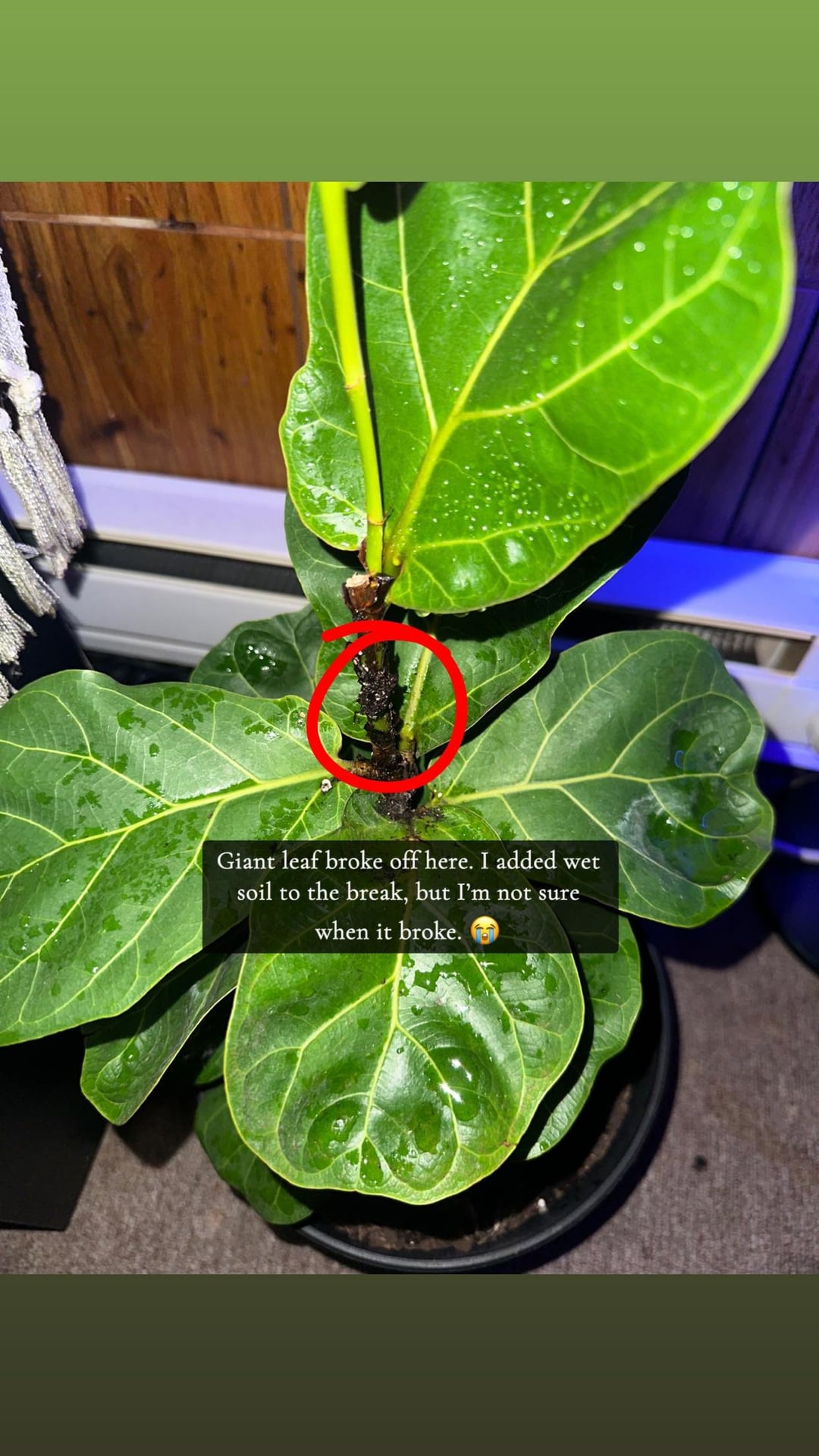 それで、私は 3 日間町の外で仕事をします。これはあまり関係のないことだとわかっていますが、ある意味では関係があります。金曜日から行っていて、戻ってきたら、写真が壁から落ちたせいで、フィドルリーフイチジクの大きな葉が折れていました。この葉もとても大きくて綺麗でした。 😭 時々同じ場所に再成長することがあると読んだのですが、このような植物は初めてなのでわかりません。