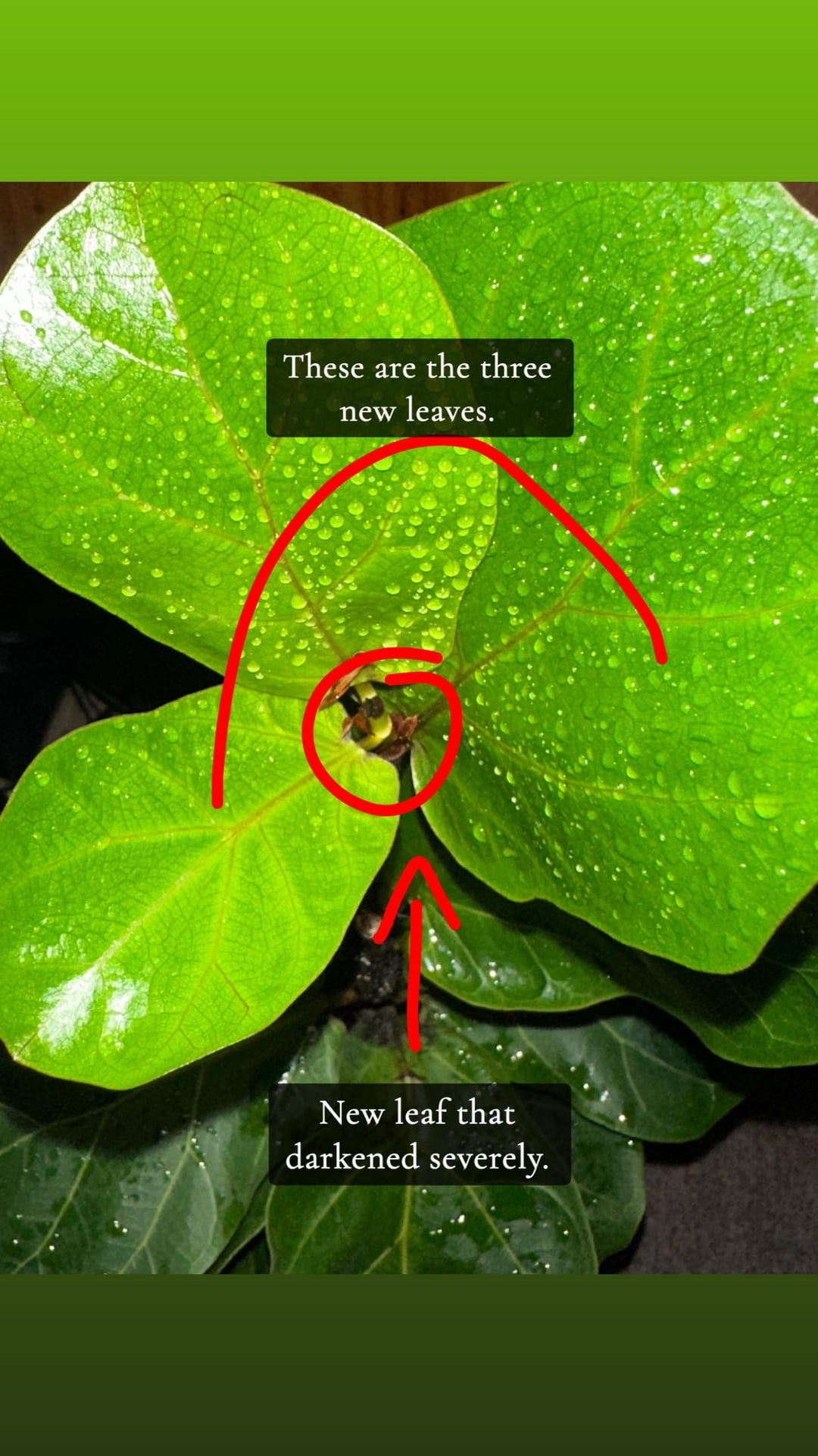 最後に、私の植物は非常に順調に成長しており、短期間で新しい大きな葉が 3 枚成長しましたが、一番新しい小さな葉が黒っぽくなっていることに気づきました。私がいない間、叔母が動植物の世話をしてくれているのですが、こいつに水をやるなと言うのを忘れていたので、水のやり過ぎが原因でしょうか?