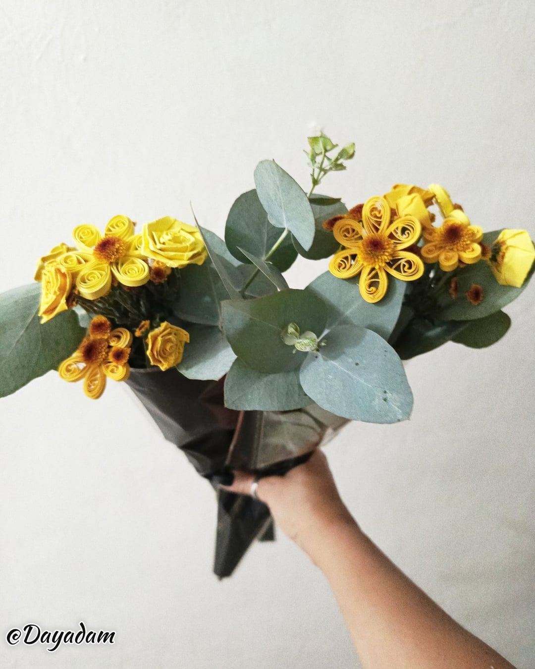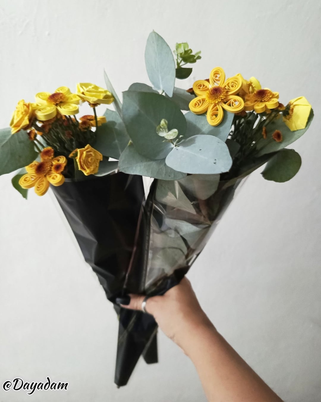 [Natural Flowers Combined with Quilling Flowers](https://peakd.com/hive-130560/@dayadam/ yellow-flowers-for-my-two-great-loves-natural-flowers-combined-with-quilling-flowers-engesp-fwa)