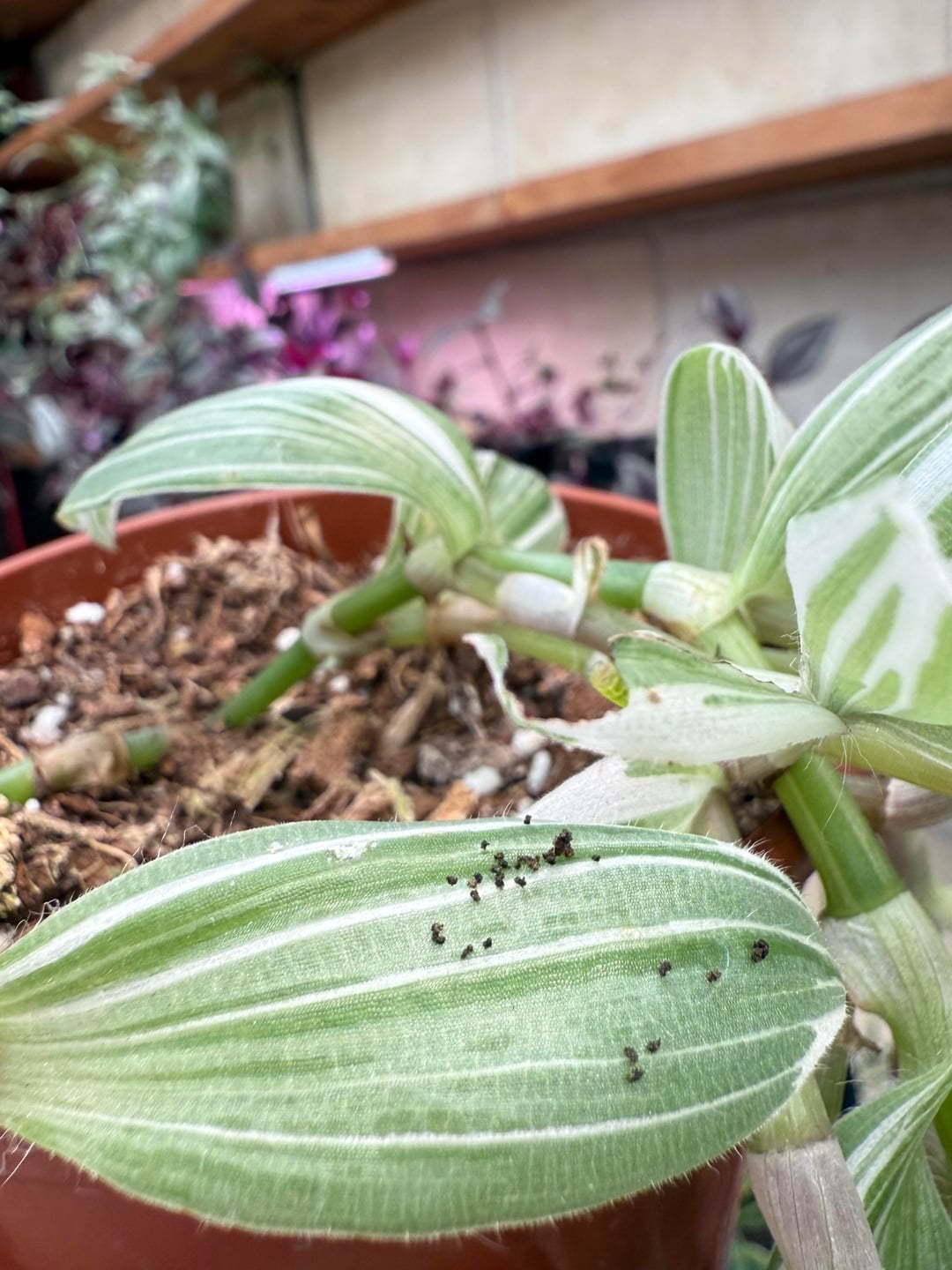 2 番目の写真は、植物の葉に与えるダメージを示しています。この虫が特にムラサキツユクサが好きなのか、それとも私の他の植物に移ってしまうのか知っている人はいますか?