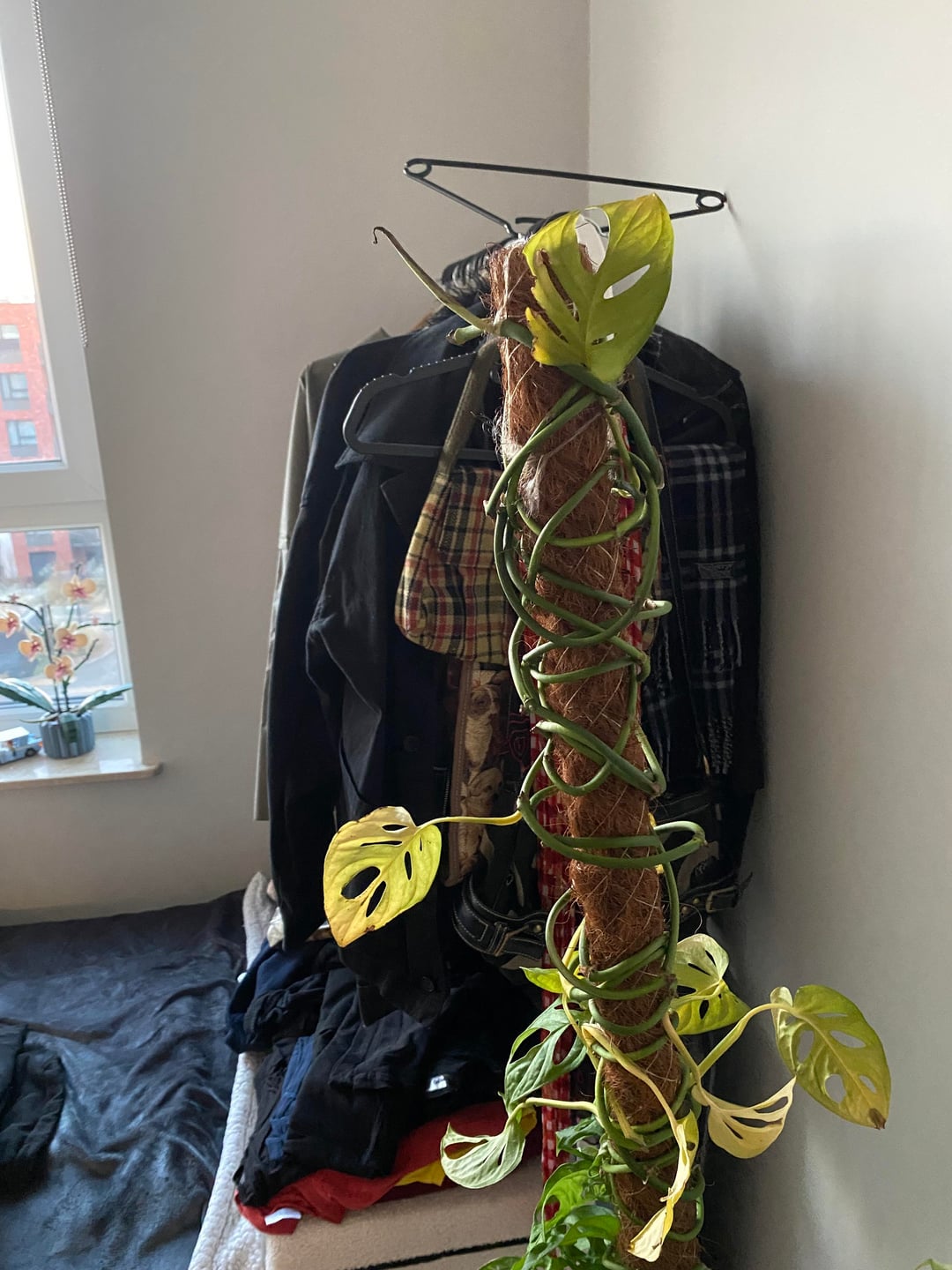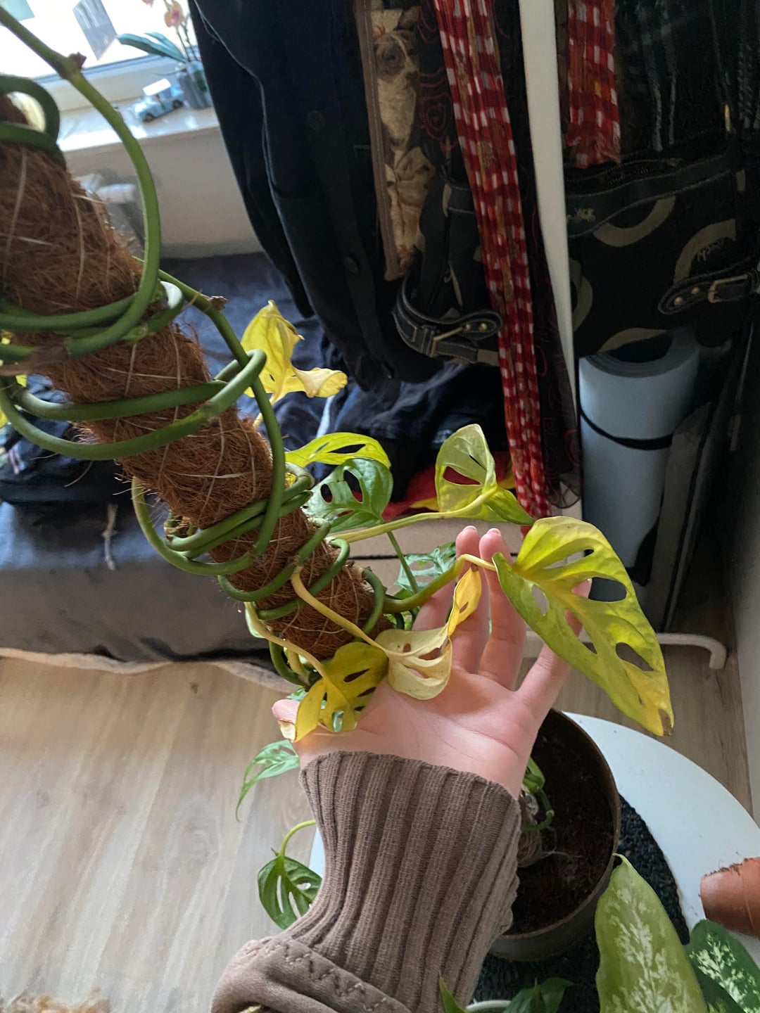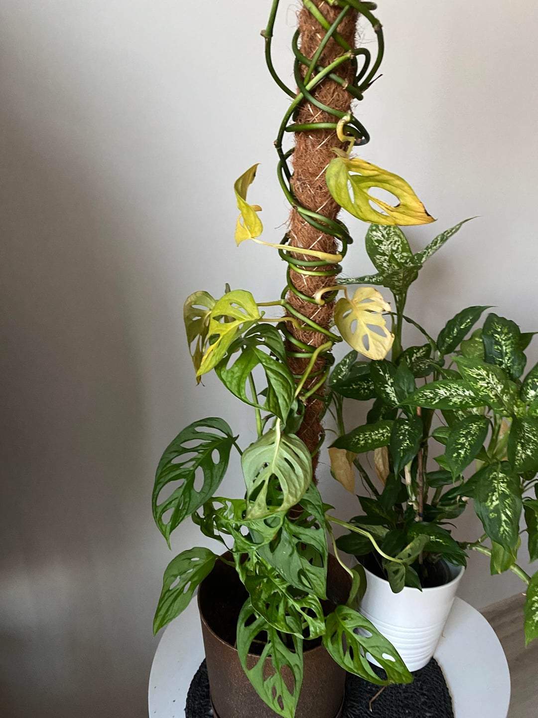 1週間ほど前にスティックを鉢に挿したのですが、上部の葉が黄色くなっていることに気づきました。植物をきつく縛りすぎていないと思いました。冬の間は2週間に1回水やりをしています。また、鉢の下に水があるかどうかも確認しています。間接光だと思うので、今どうすればよいでしょうか?これは正常なプロセスですか??一方、下の部分の葉は完全な状態ですが、新しい葉の展開も停止しています