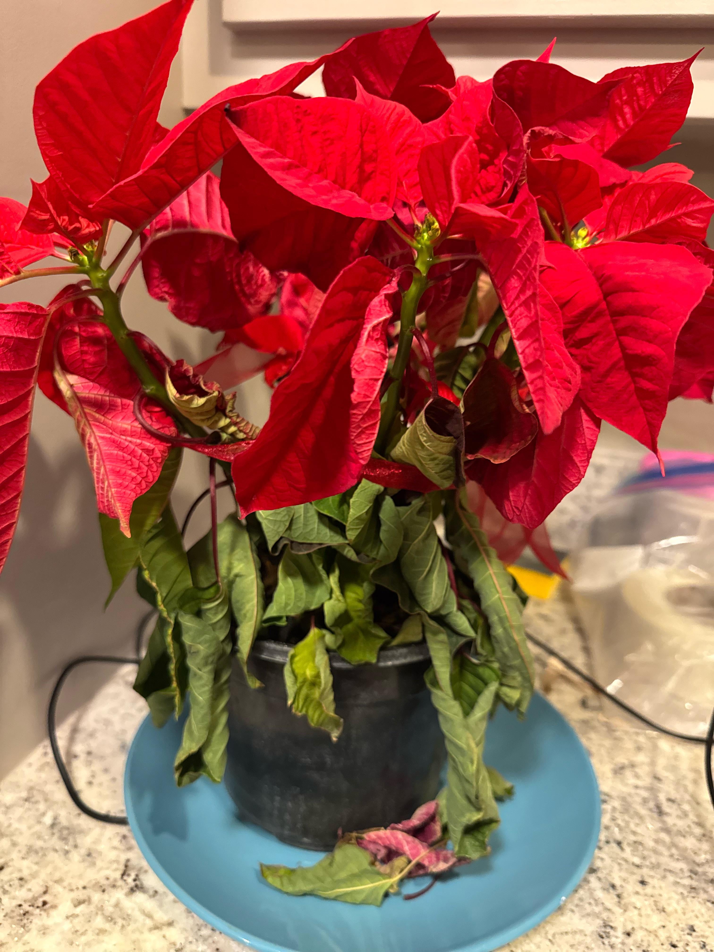 プレゼントでいただいたので、大切に保管してます。うちは寒い地域に住んでいるので、間接光を当てて窓の近くに置いたのですが、昨夜凍ったと思うので、寒くなりすぎて土がかなり乾いてしまったのでしょう。水を与えて、グローライトを持って行きました。夕方には花も元気になってきましたが、葉はまだ垂れ下がったままです。