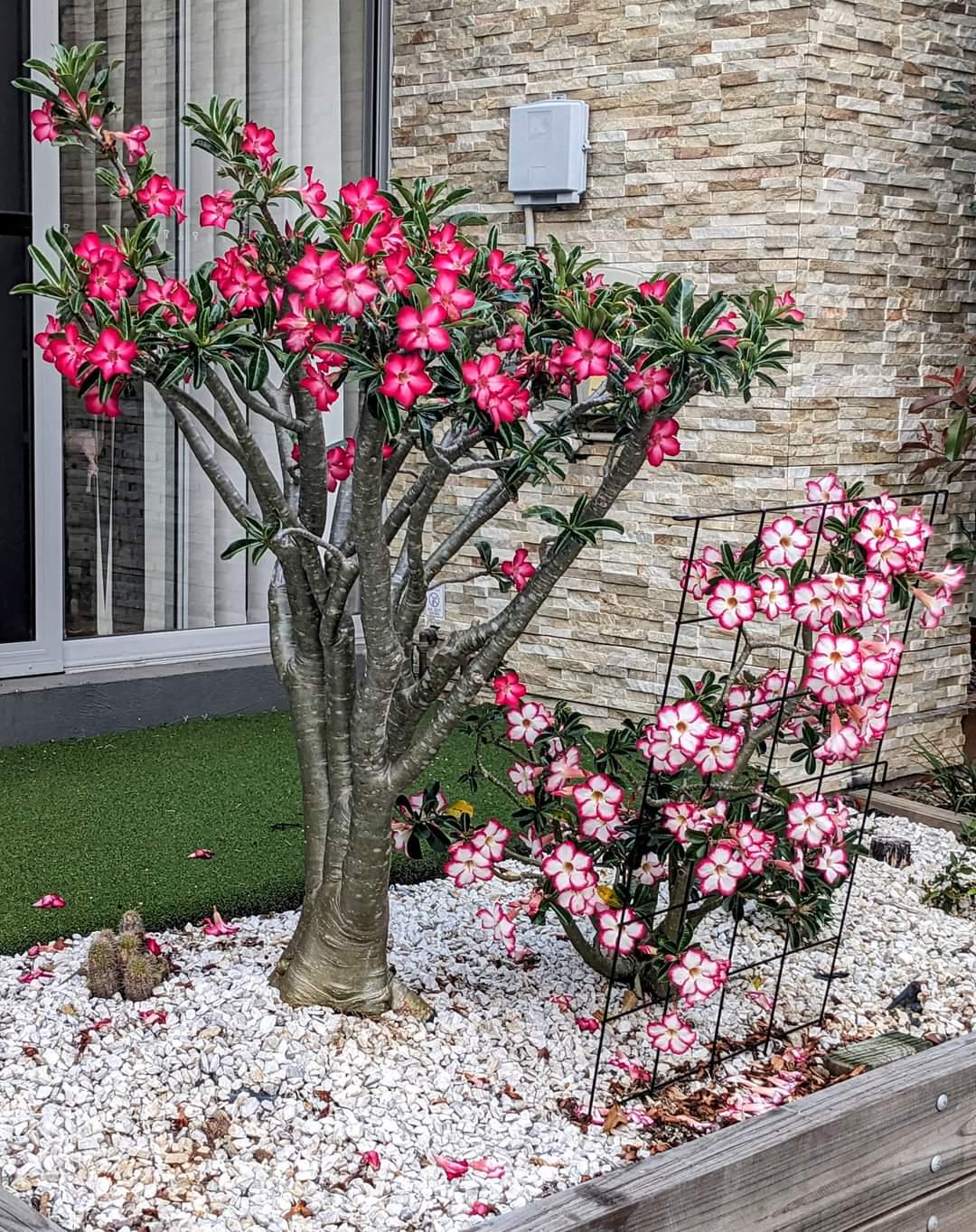 歩道の隣にある小さなユニットの小さな庭