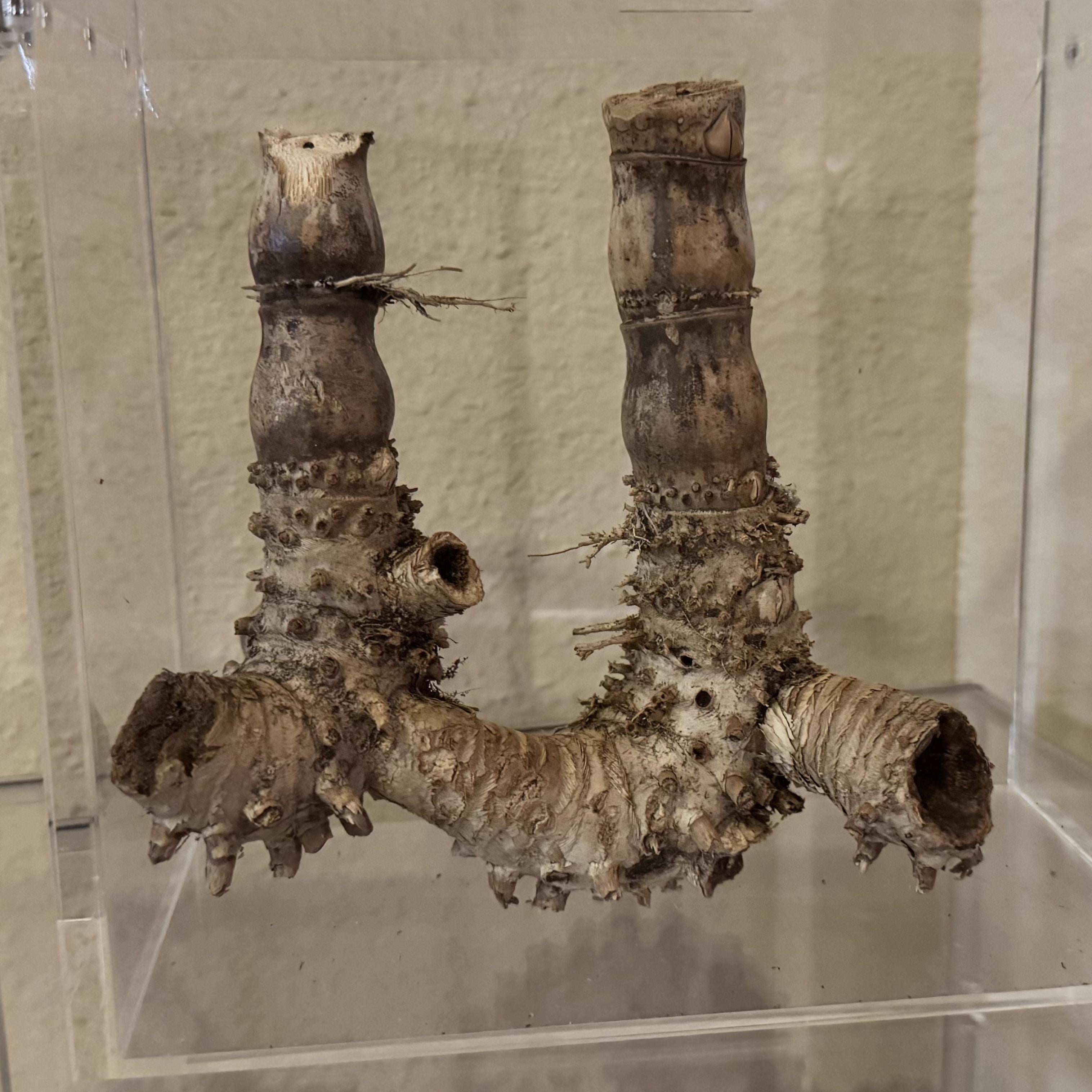 分割されても生き残らなかった仏腹竹の残骸。ルートの構造が興味深いと思ったので、そのままにしておきます。左側が親稈、右側が子稈です。
