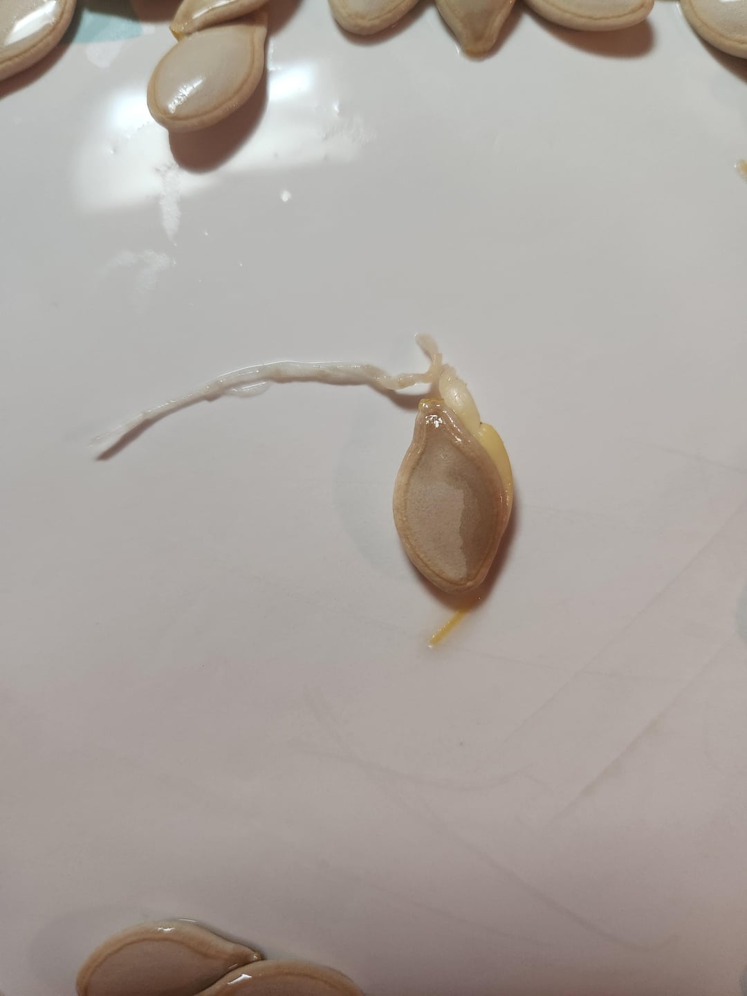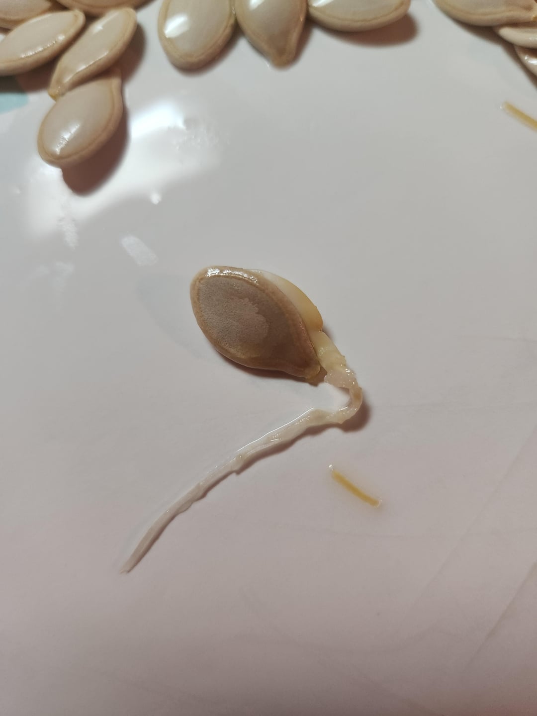 来年に備えて種を取り出そうとカボチャの 1 つを開けたら、この 2 つを見つけました。あれ、カボチャの中で発芽したみたいですね。誰でも??