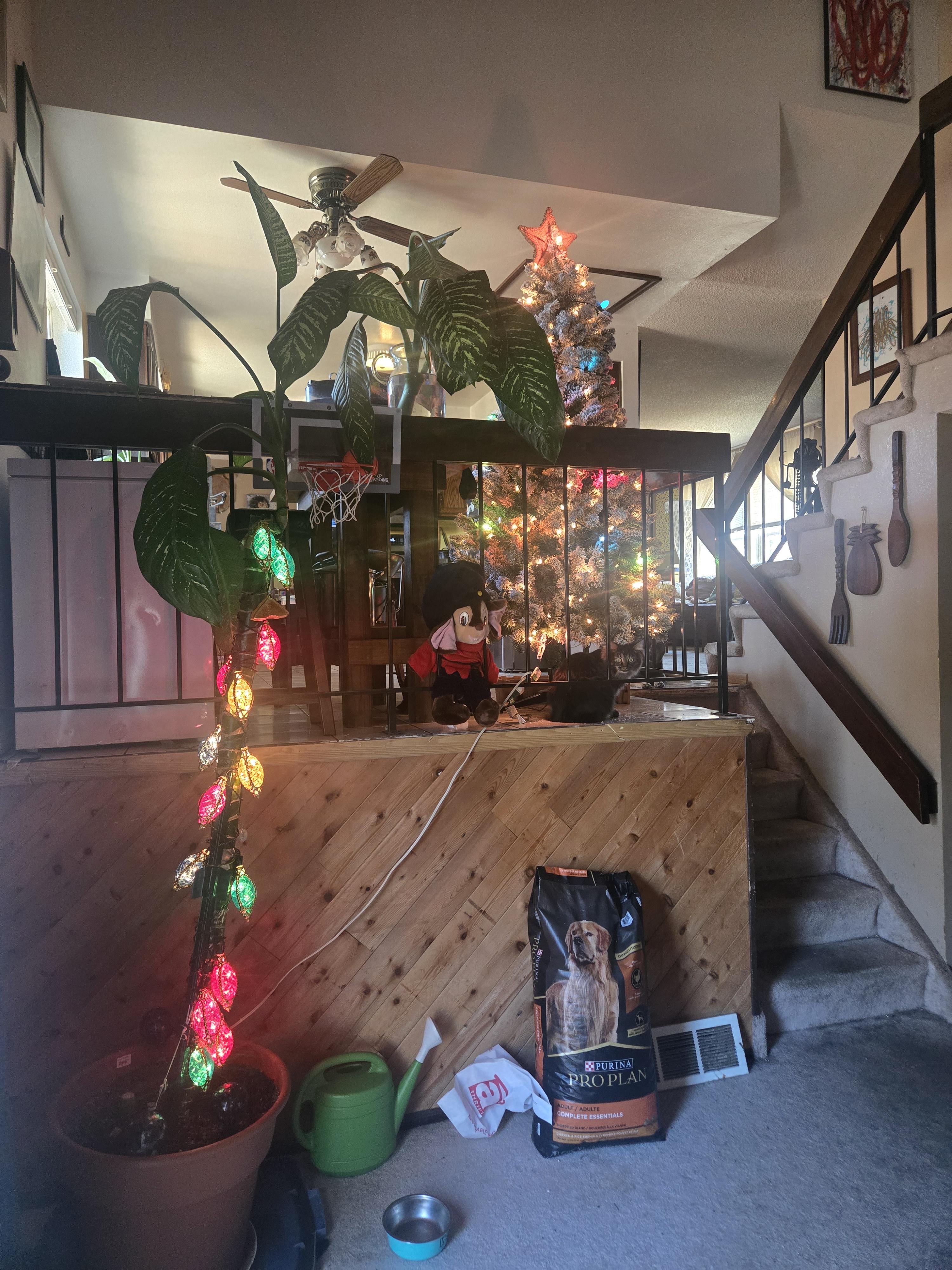 高さ10フィートのディフェンバキアはクリスマスの準備が整いました。