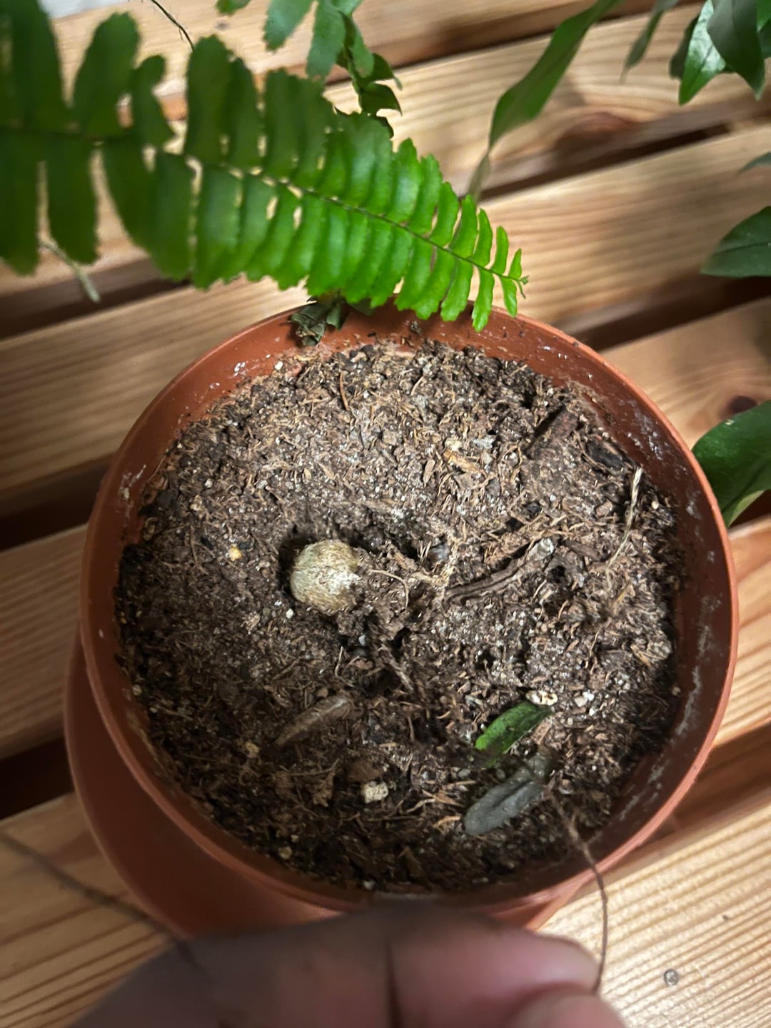 私はここ一年、子供を作るためにシダをつついてきましたが、道化師クラウンシダが卵を産んだかもしれません?! 私は根/巻きひげの1つを取り、それをメインの植物の隣の土に埋めました。それはいくつかの根とこの小さなボール状のもの(根茎?)を成長させました。 私の他のシダは埋もれたランナーから葉を出しましたが、このJCシダはまだ出ていません。 私はここで何をしているのでしょうか?あれは根茎ですか?どうしたら新しい植物になるのでしょうか? ありがとう