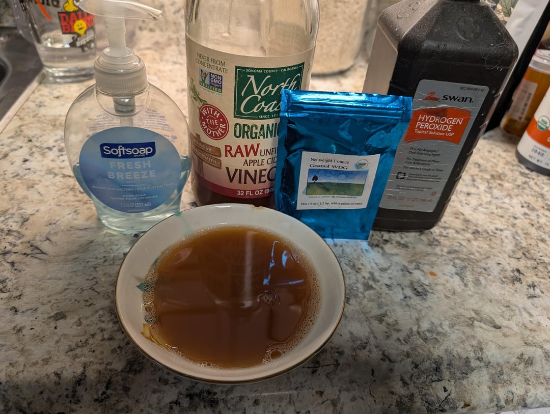 1回目の攻撃 土壌/ココナッツコイアを乾いた状態に保ちます 次に、水を1の割合で水素と3の割合で混ぜます(はい、微生物を殺すのはわかっていますが、最悪です 😞)