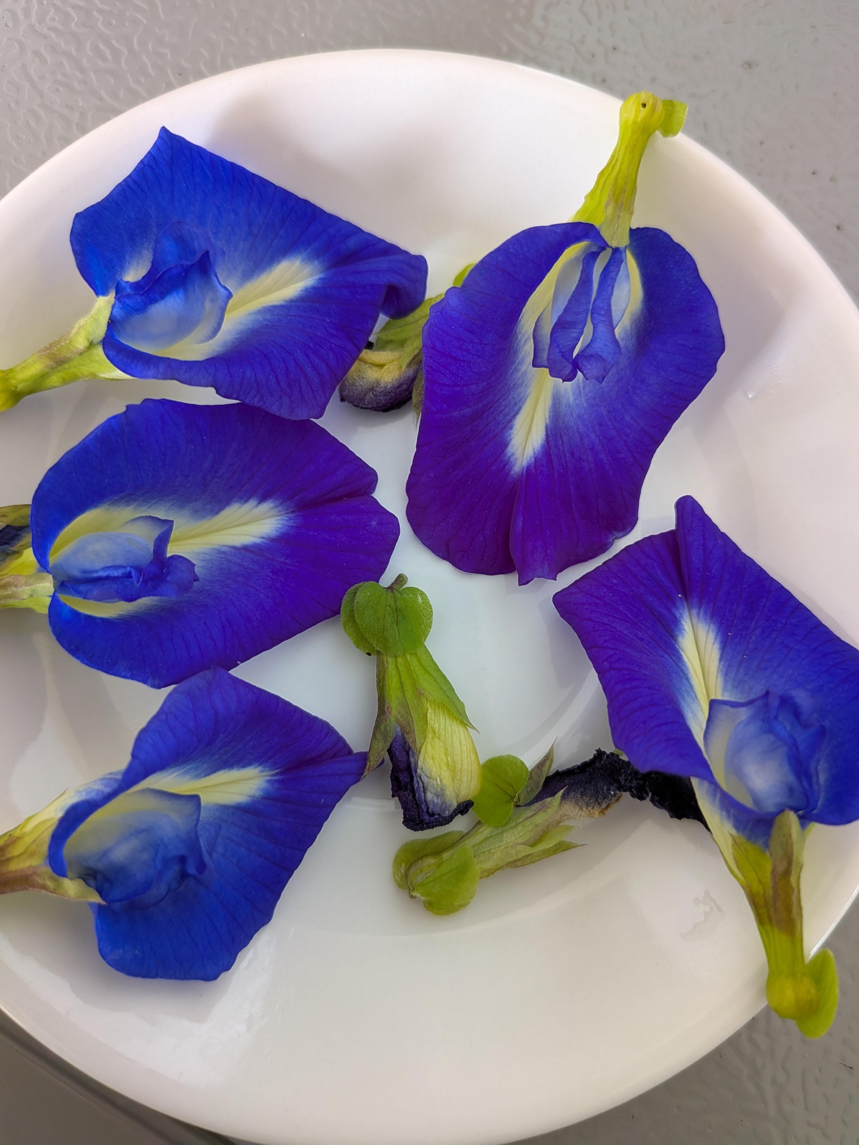 私の庭から採れた正真正銘の天然バタフライピー(多くの人はこれらは存在しないと思っています)。