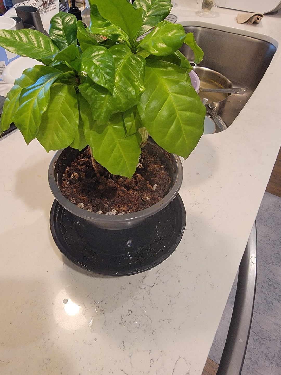 やあみんな!コーヒーの木に水をやったところ、排水トレイに小さな白い虫のようなものがたくさん浮かんでいるのに気づきました(写真を参照)。それらは非常に小さく、白/半透明で、少しジャンプしたり動き回ったりしているように見えます。