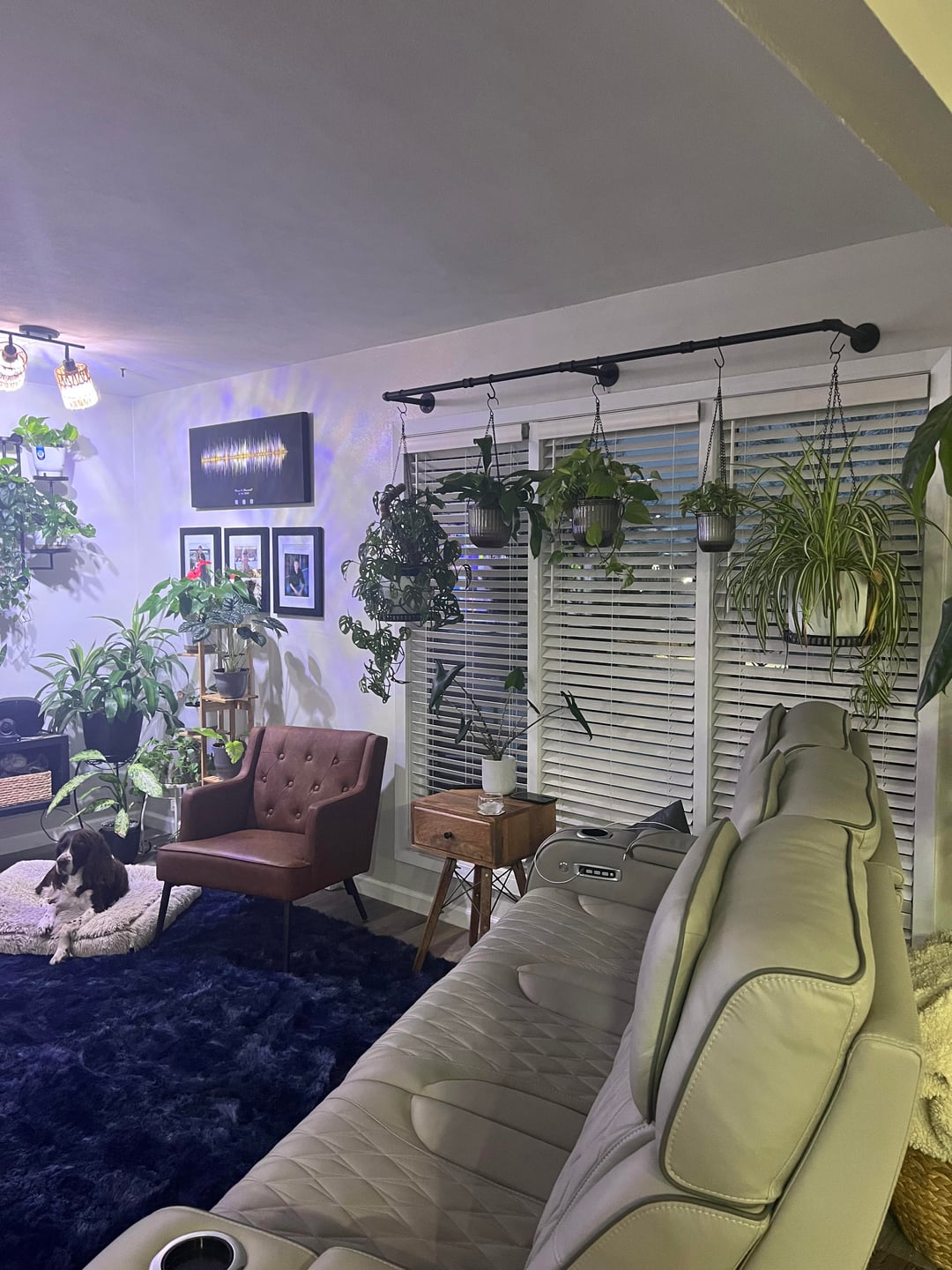 植物友達の皆さん、こんにちは!カーテンに関するアドバイスが欲しいのですが?窓の向こう側にあるプラントハンガーを外したくないのですが、もっと良い方法があるかもしれませんが、リビングルームを柔らかくするためにカーテンか何かが必要だと思いますか?考えは?はい、いくつかの照明が点灯していないことは知っていますが、私の緑の赤ちゃんたちと一緒に私の生活をもっとスムーズにしようとしています – ありがとう!!
