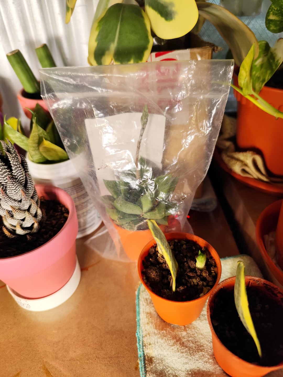 保育園に行く前にお弁当を食べるべきでした。今はお腹が空いていて、レストランでお弁当を食べている間、彼女を炎天下の車の中に放っておくことはできないので、害虫の侵入を避けるために彼女を家に連れて帰り、ジップ袋に入れなければなりません。写真の彼女の場所は、植え替え後に彼女を置く予定の場所です。