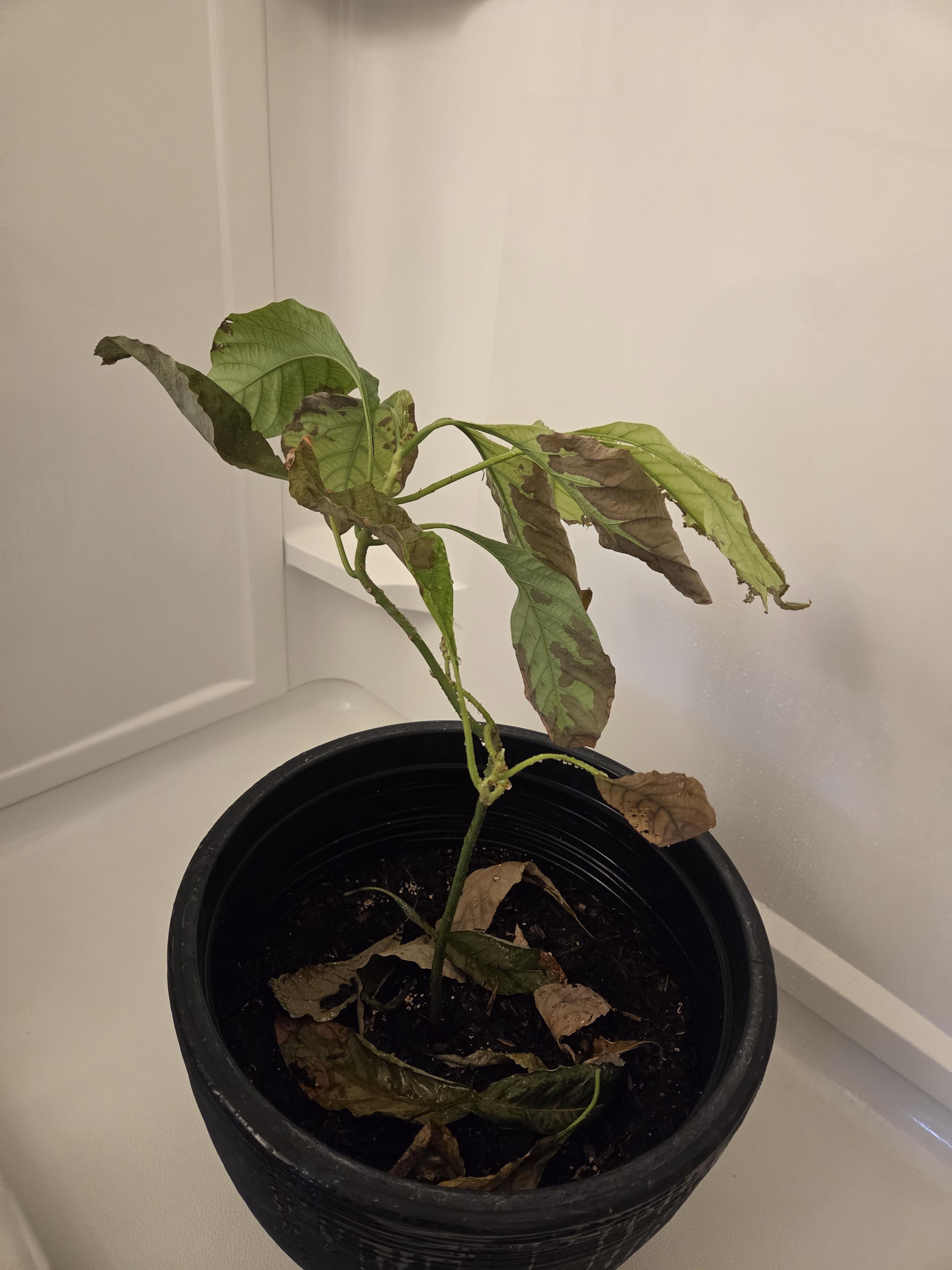 妻が種から育てたアボカド(約3年)の調子が良くないようです。葉がひび割れたり、落ちたりする。何かアドバイスはありますか?ありがとう。室内を68〜70度に保ちます。適度な/間接的な光。先月くらいまではいつもかなりうまくいきました。