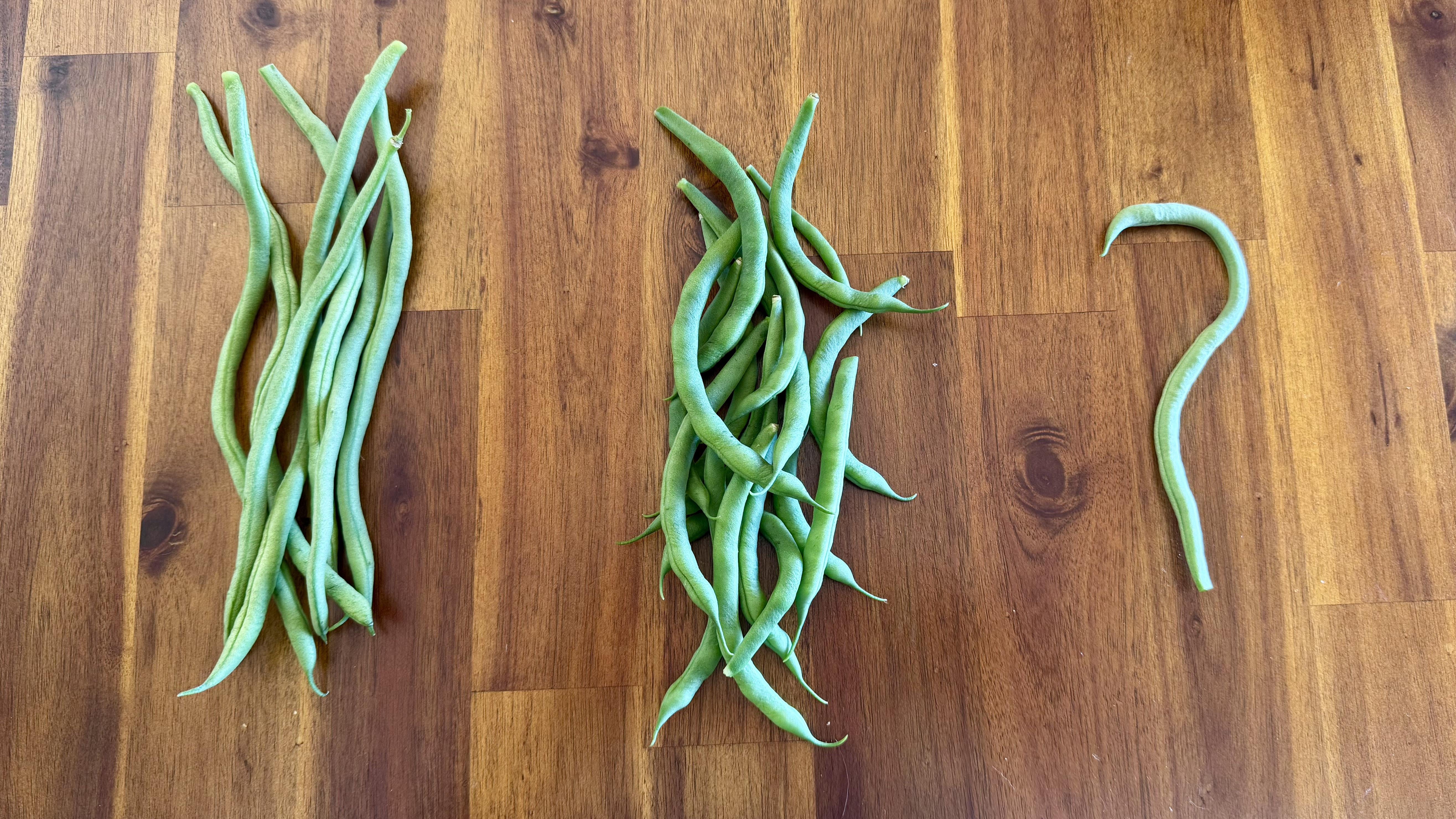 今朝の収穫:極豆、ヤブインゲン、クエスチョンインゲン。