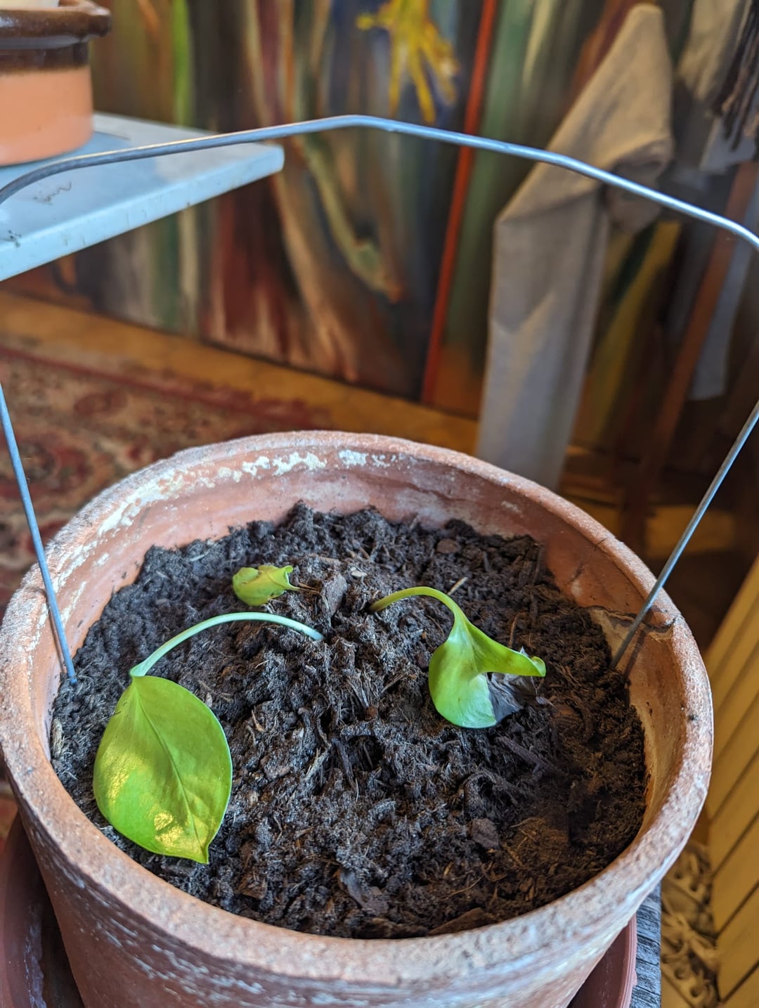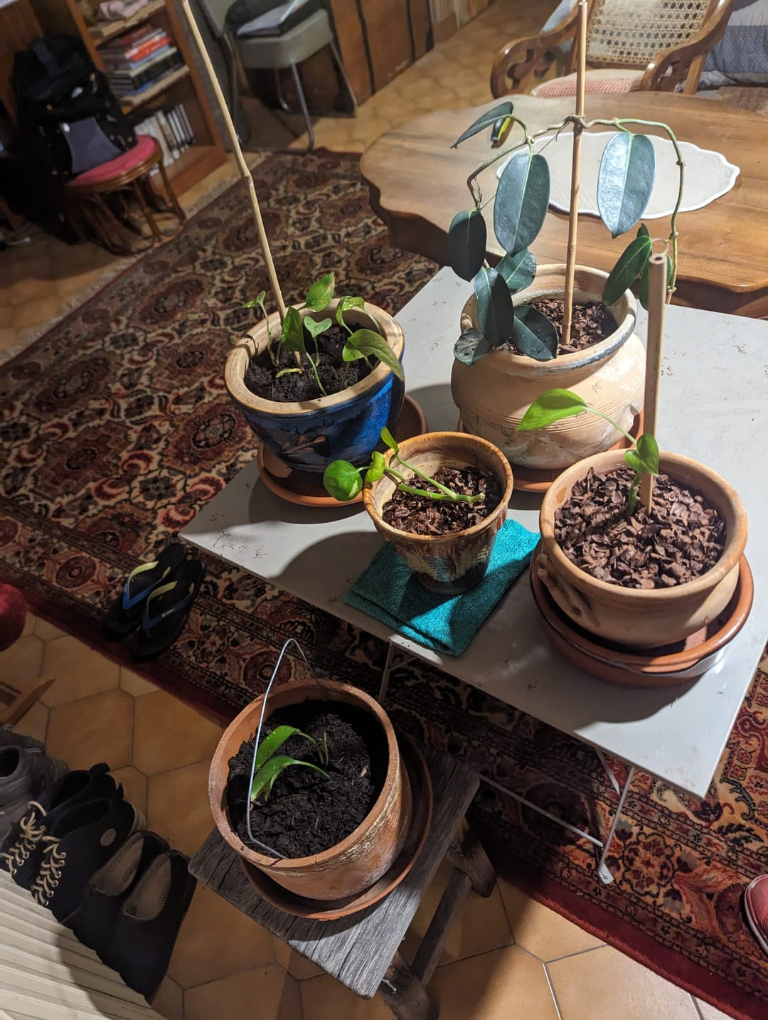 - B、新しい土で植え替え –> それを実行し、すべての芽に独自の鉢を与えました。植え替えの最良のアドバイス、別名、粘土ボール、2/3 土、植物、土を再度実行したと思います。鉢植え直後に一度水やりをしましたが、土が乾ききっていなかったので10日ほど経ってから再度水やりをしました。