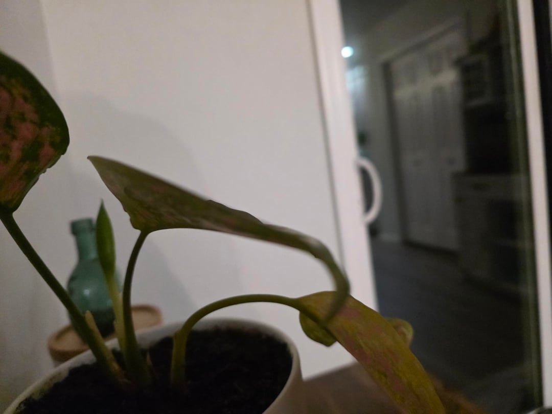 1年前にこのアグラオネマビューティーを購入しました。それは非常に根が詰まった自動給水ポットに入っていました。新しい鉢に植え、推奨されている新しい水はけの良い土に植えると、咲き始めました。この秋、また土を変えて冬を越せるようにしました。しかし、今年の冬はあまり調子が良くありません。葉が垂れ下がっているので写真ではわかりません。直射日光から約3フィート。
