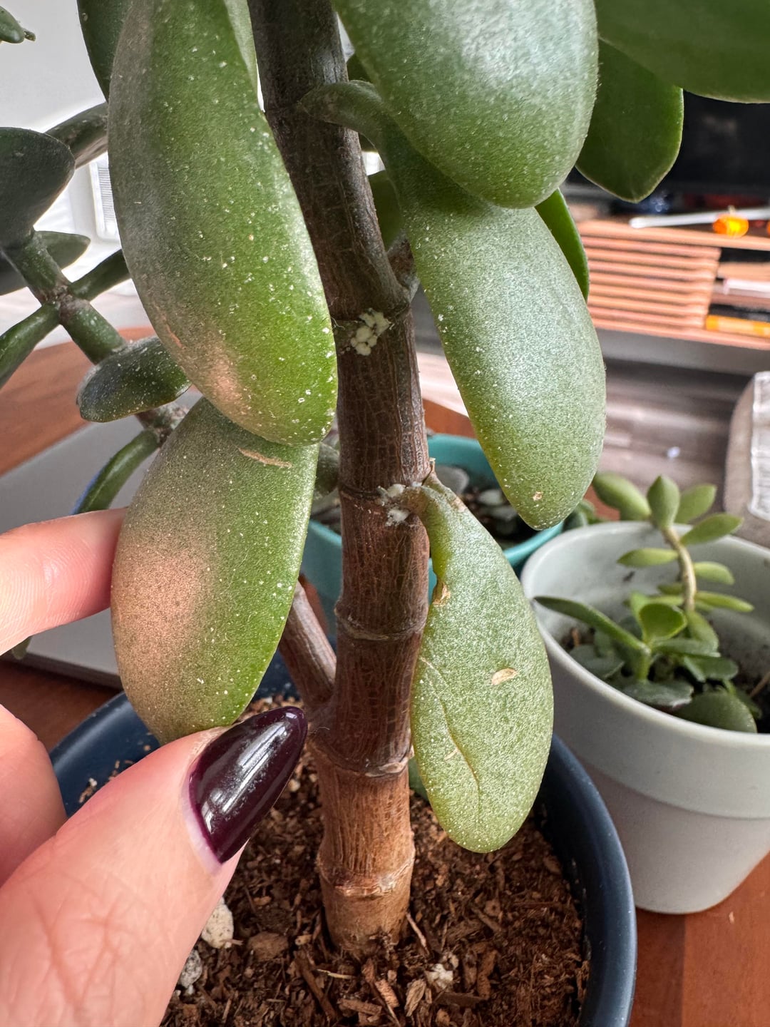 白い毛羽立ちがあることに気づきました。私が所有している多肉植物の一部でのみそれらが見られます。周囲の植物には何もありません。消毒用アルコールで拭くだけですか?