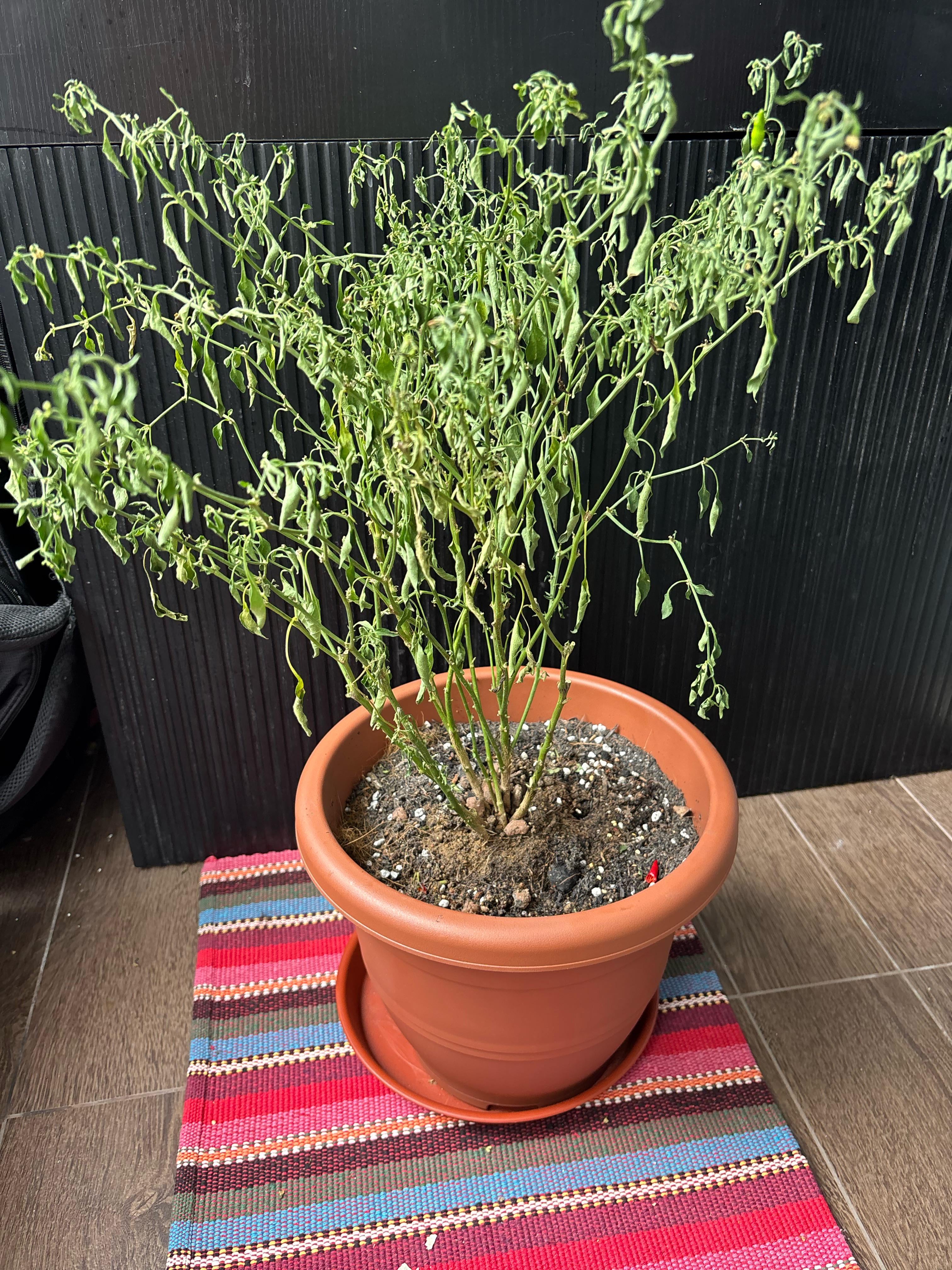 トウガラシの植物を救うために、どうしても助けが必要です。 5日前にパーライトと堆肥を入れて植え替え、剪定をした。ストレスを和らげるために唐辛子を切り取りました。数日前に葉が垂れ下がっていたので、それも切り取りました。毎日しっかりと水やりをしています。アドバイスをいただければ幸いです。