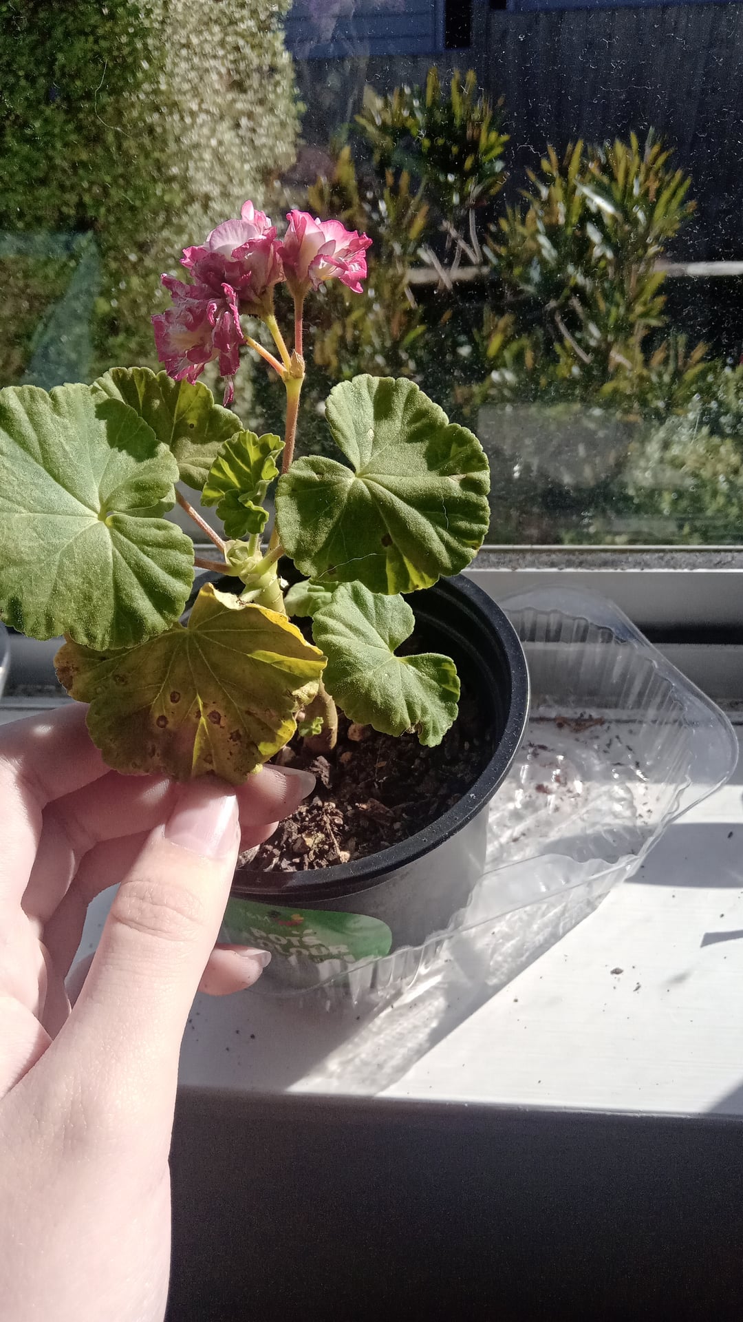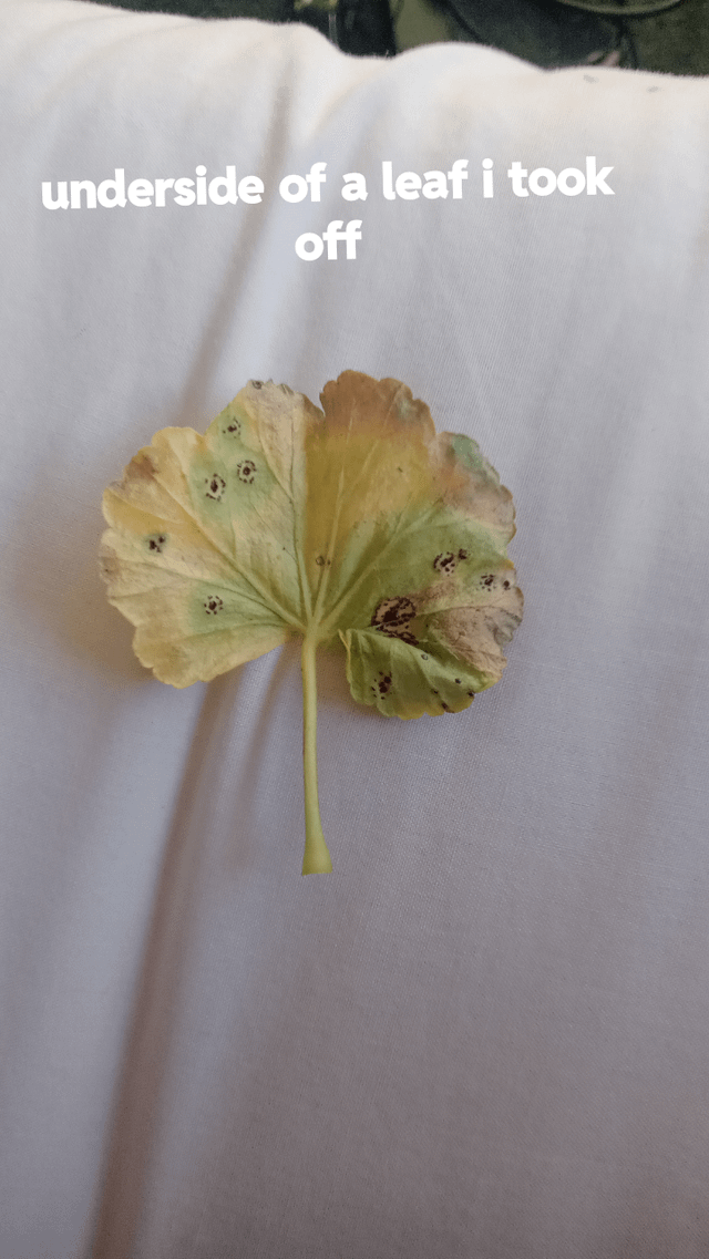 さて、私は数週間前にトレード・ミーからリンゴの花のゼラニウムを手に入れました。トレード・ミーは植物にとって最適な場所ではないことはわかっています。植物は病気になったり病気になる可能性があるからです。でも、私が世話をしやすくするために、植物を健康にすることに手間をかけることができる植物を見つけました。病気になっているのだと思います。多くの葉の裏側に黒い斑点があり、かなりの葉が非常に黄色く、少し茶色/色あせてぐったりしています。私は神経発散型なので、朝一番に世話をするほうが楽なので、室内に置いています。