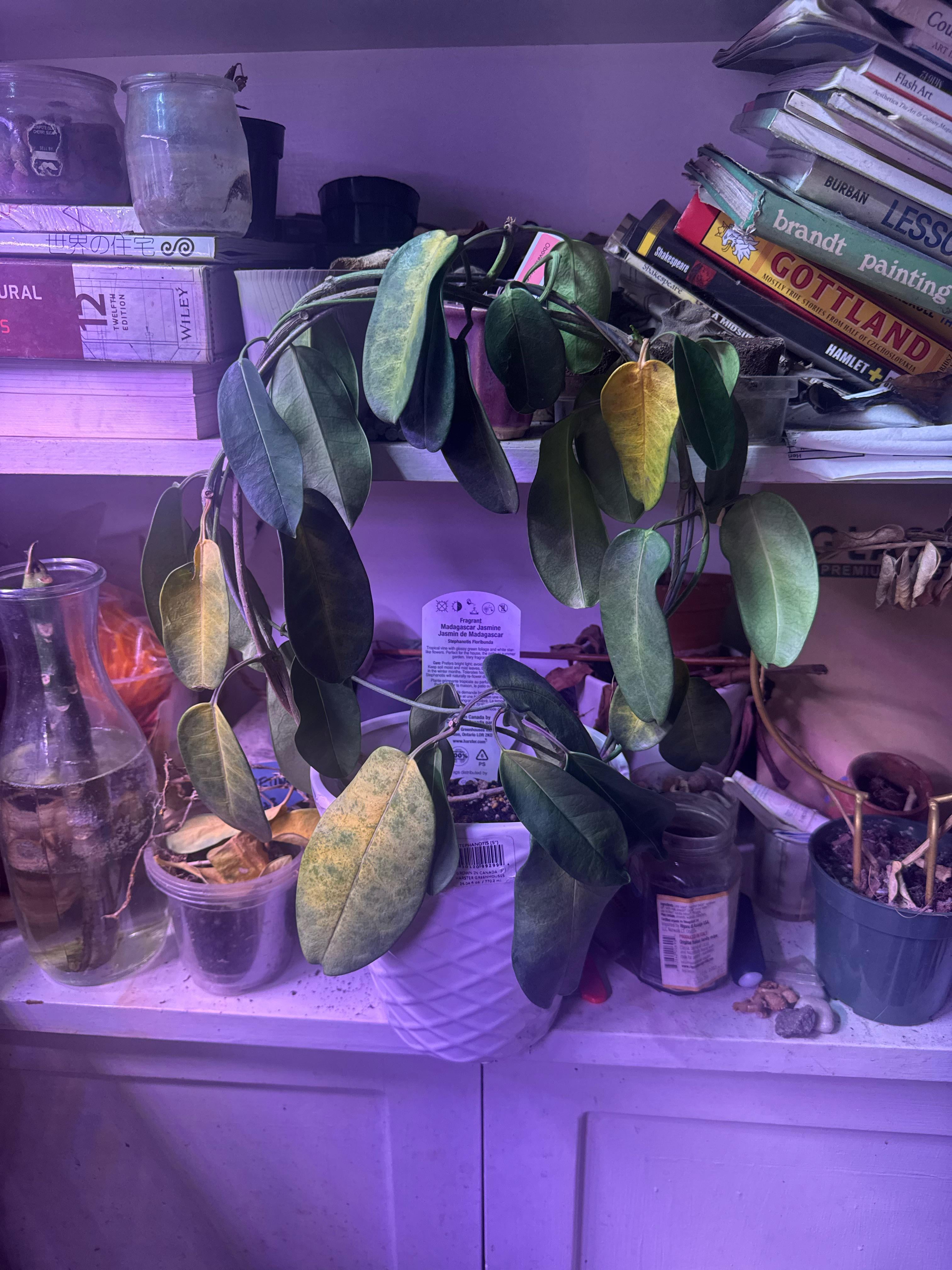 葉はゆっくりと黄色くなり、落ち始めています…そして植物全体がぐったりしているように見えます。先日過酸化水素を与えてみましたが、悲しいことにその前から同じように減少しています。公平を期すために、以前はニューヨークにいて暖房のない部屋に置いていたのですが、今は他の植物や照明と一緒に寝室に置いてあり、枯れてしまうのが怖いです!!