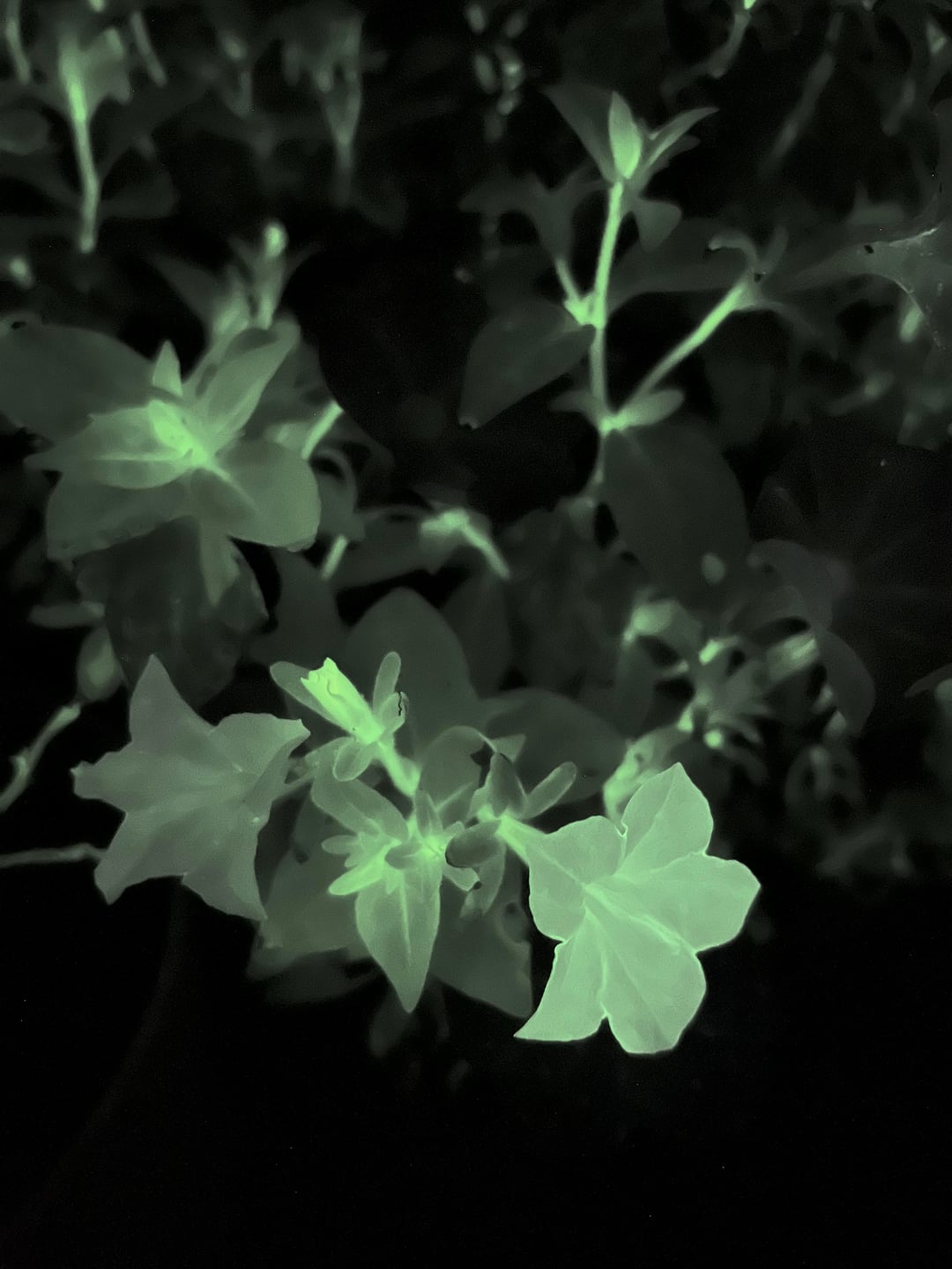 この新しい変種の花は、オリジナルのように光りません。しかし、葉と茎はまだ縫い合わされていて、おそらく白いペチュニアよりもさらに輝きを放っています。時間が経てば分かるだろう(: