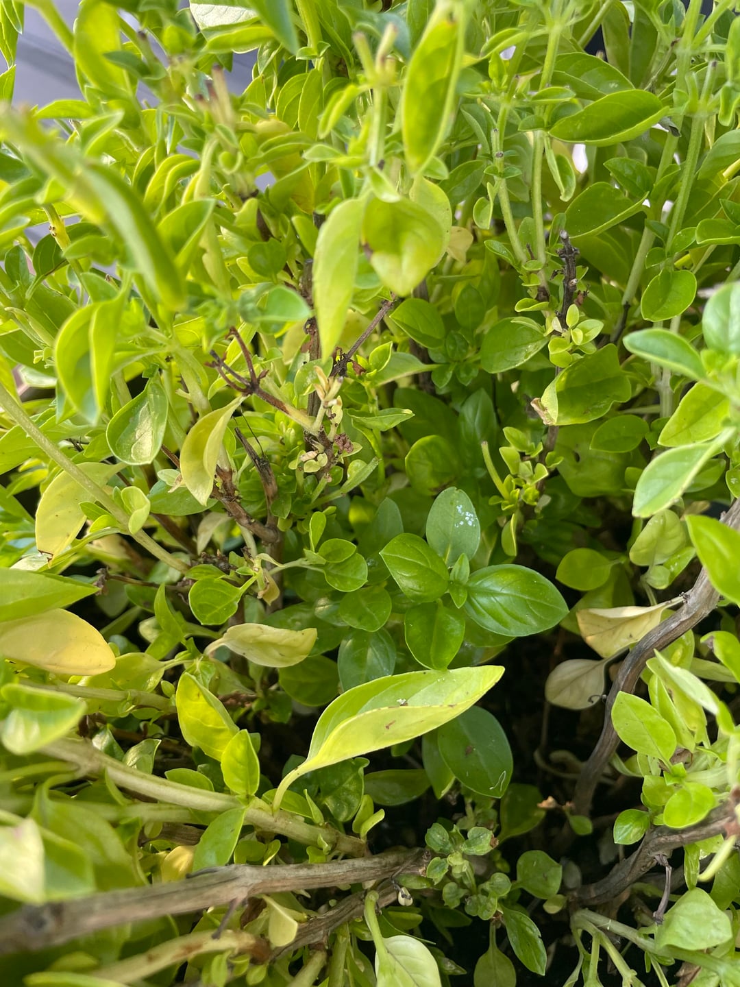 皆さん、こんにちは。私のバジルは上部が痛んでいるようですが、下部は少し良くなりました。 上が下を日差しから守ってくれている気がします。 このままにしておくべきですか、それともどうすることをお勧めしますか? 一日の半分は太陽(オーストラリアの夏の太陽、南西オーストラリア)に当てられ、半分は日陰にあり、ほぼ毎日水やりをしています。 花瓶が小さすぎますか?二つの大きな花瓶に唾を吐きかけなければなりませんか? アドバイスは大歓迎です、ありがとう