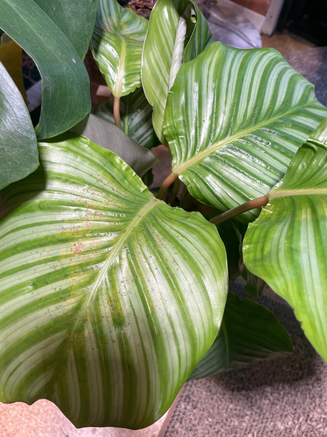 私はその多くを見ました "茶色の斑点を助ける" 追加のご意見がございましたらよろしくお願いいたします。湿度が低すぎませんか?ラジエーターの熱があるアパートで観葉植物を育てる初めての冬です。私は水底にいるのですが、植物育成ライトを消し忘れることで知られています。ありがとう!