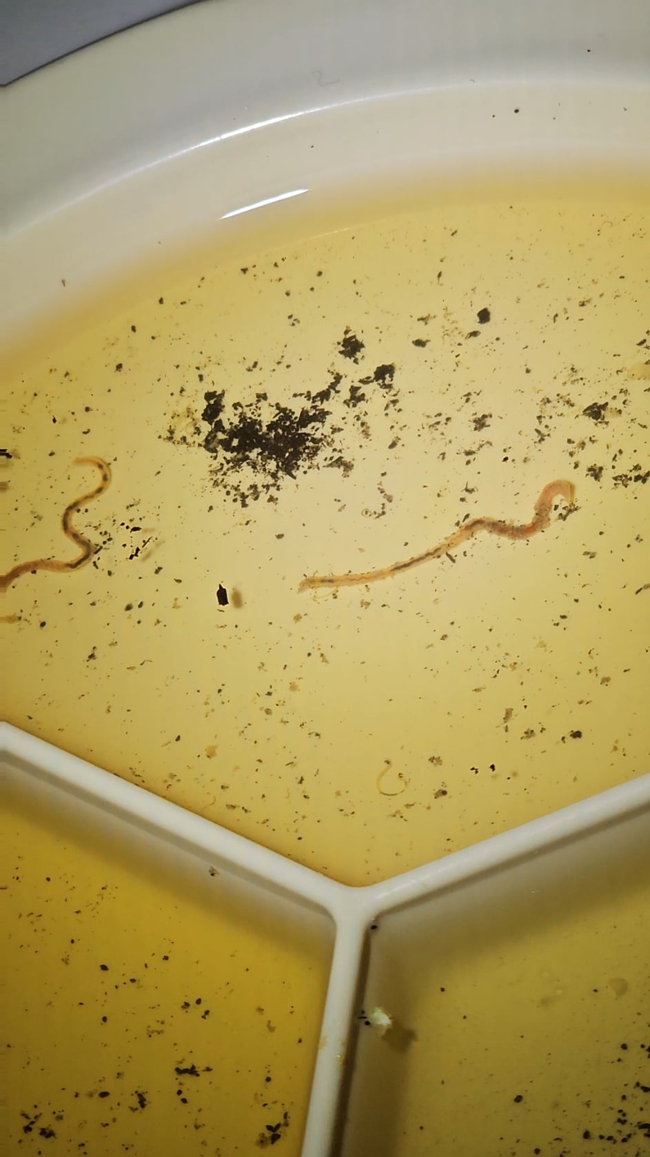 ポトスに水をやると、奇妙な虫がお皿の中にいました。私にはミミズには見えませんが、よくわかりません。このビデオでは見えないと思いますが、本当に小さな虫もいます。それは何でしょうか?