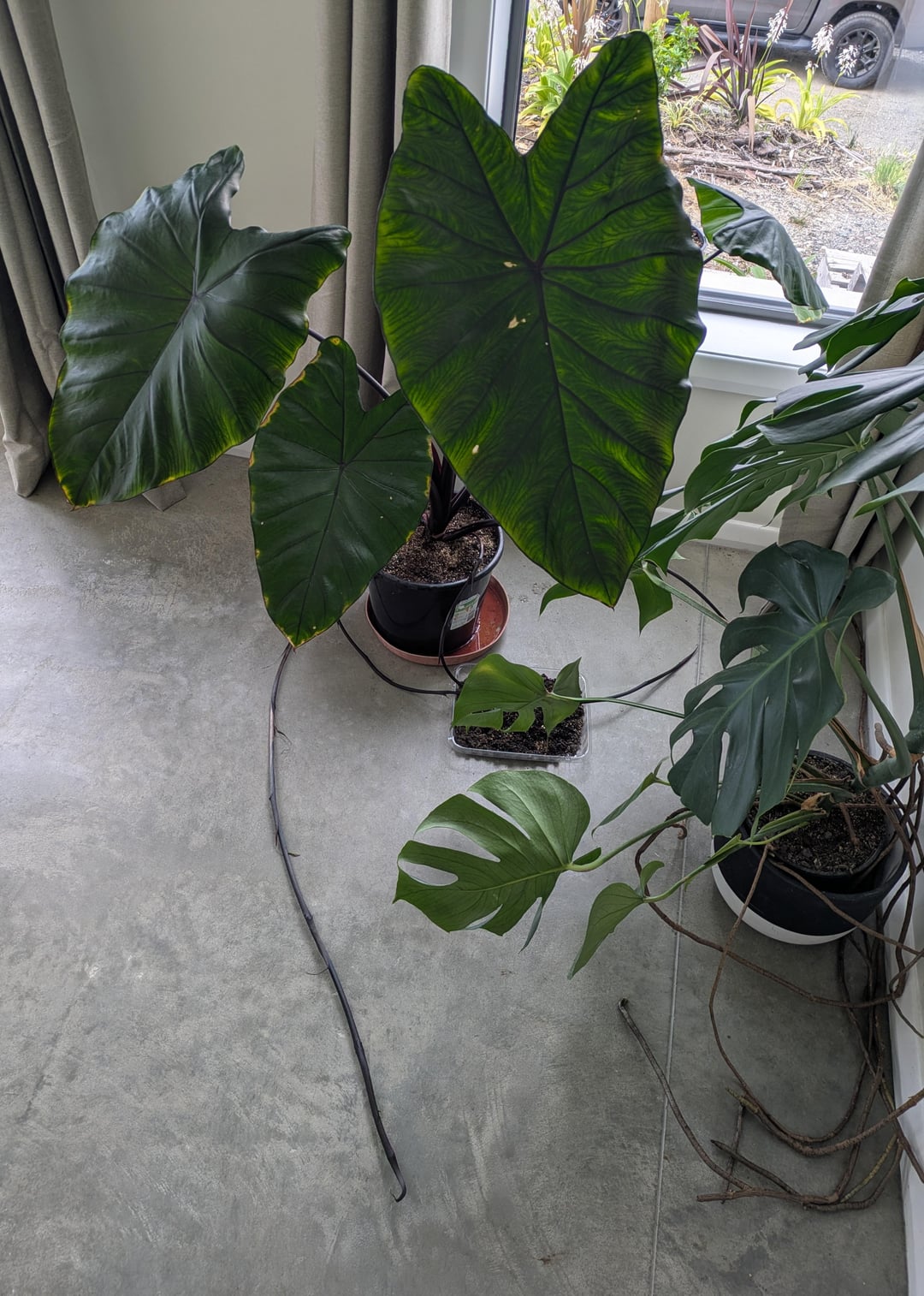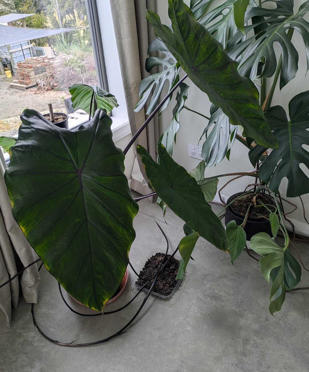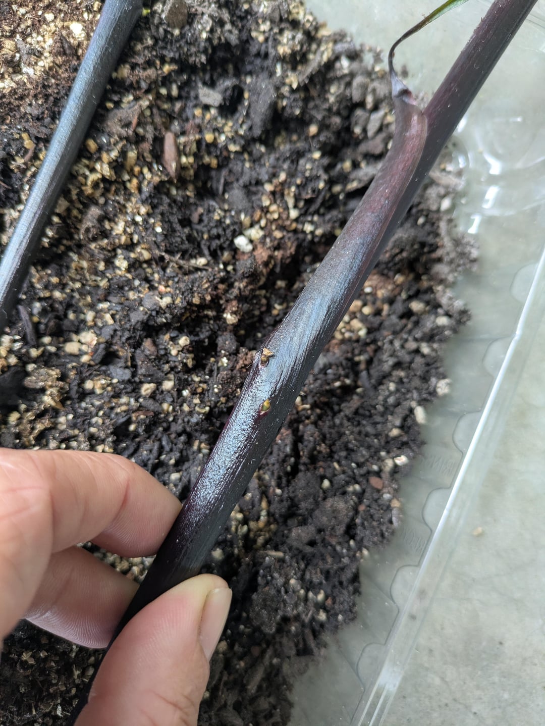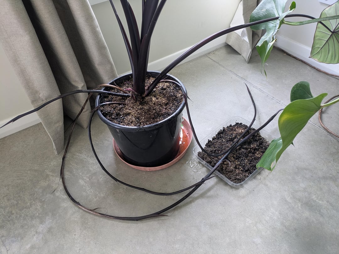 うちの黒里芋がとても長い芽を出し始めました。ノードは root 化できるように見えますが、今のところうまくいきません。とても広い鉢に入っています
