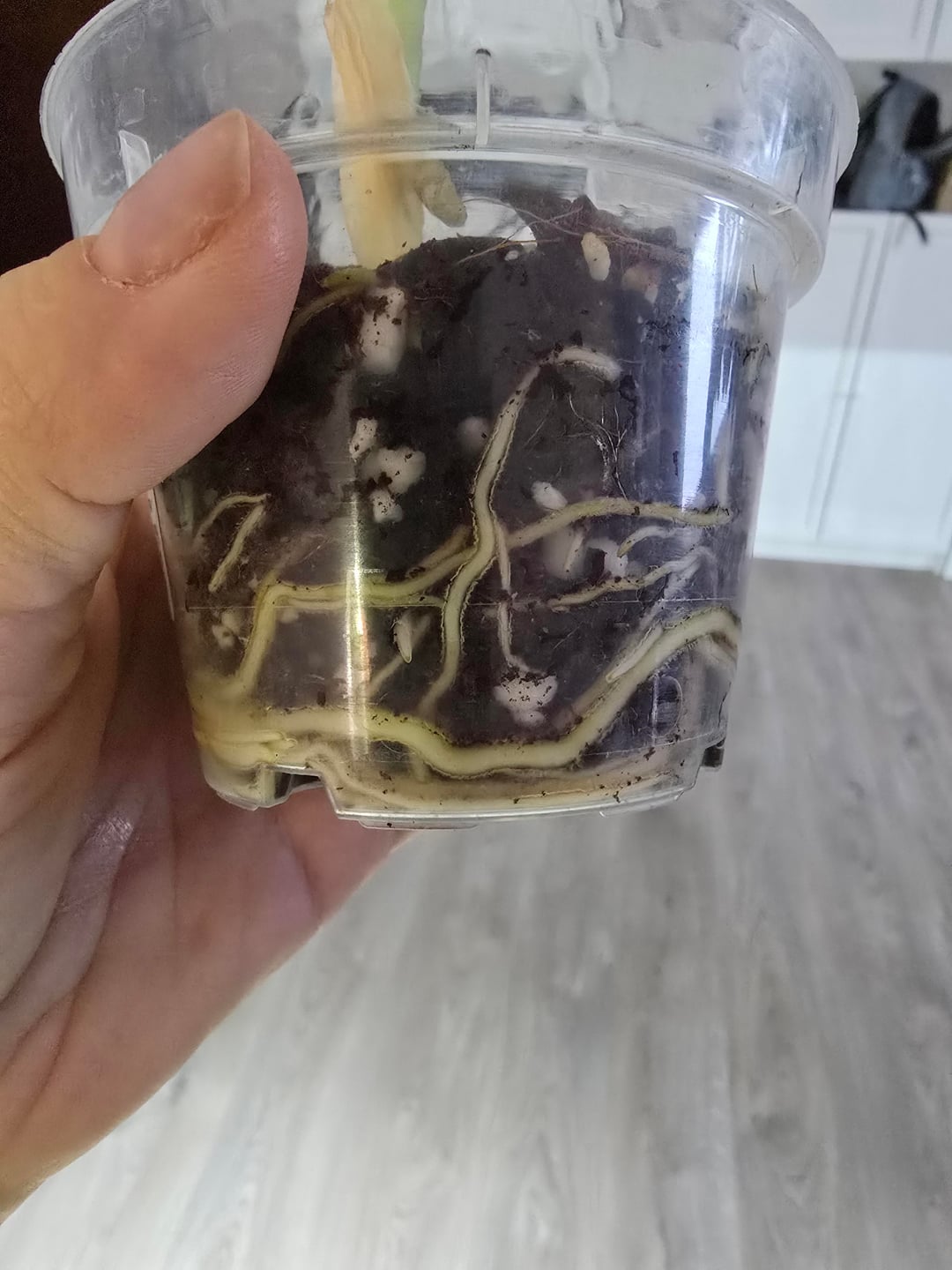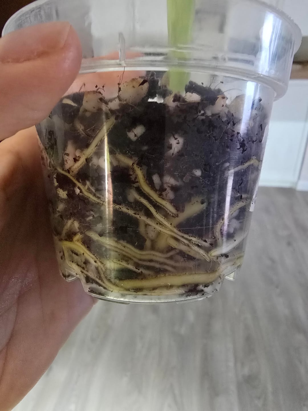 私は約2週間ごとに肥料を与え、水分計で土壌が乾いたときのみ(7〜10日)水を与えます。彼女は分厚いアロイドミックスに植えられており、私の他のアロイドでは成功しています。根系は非常に健全に見えます。
