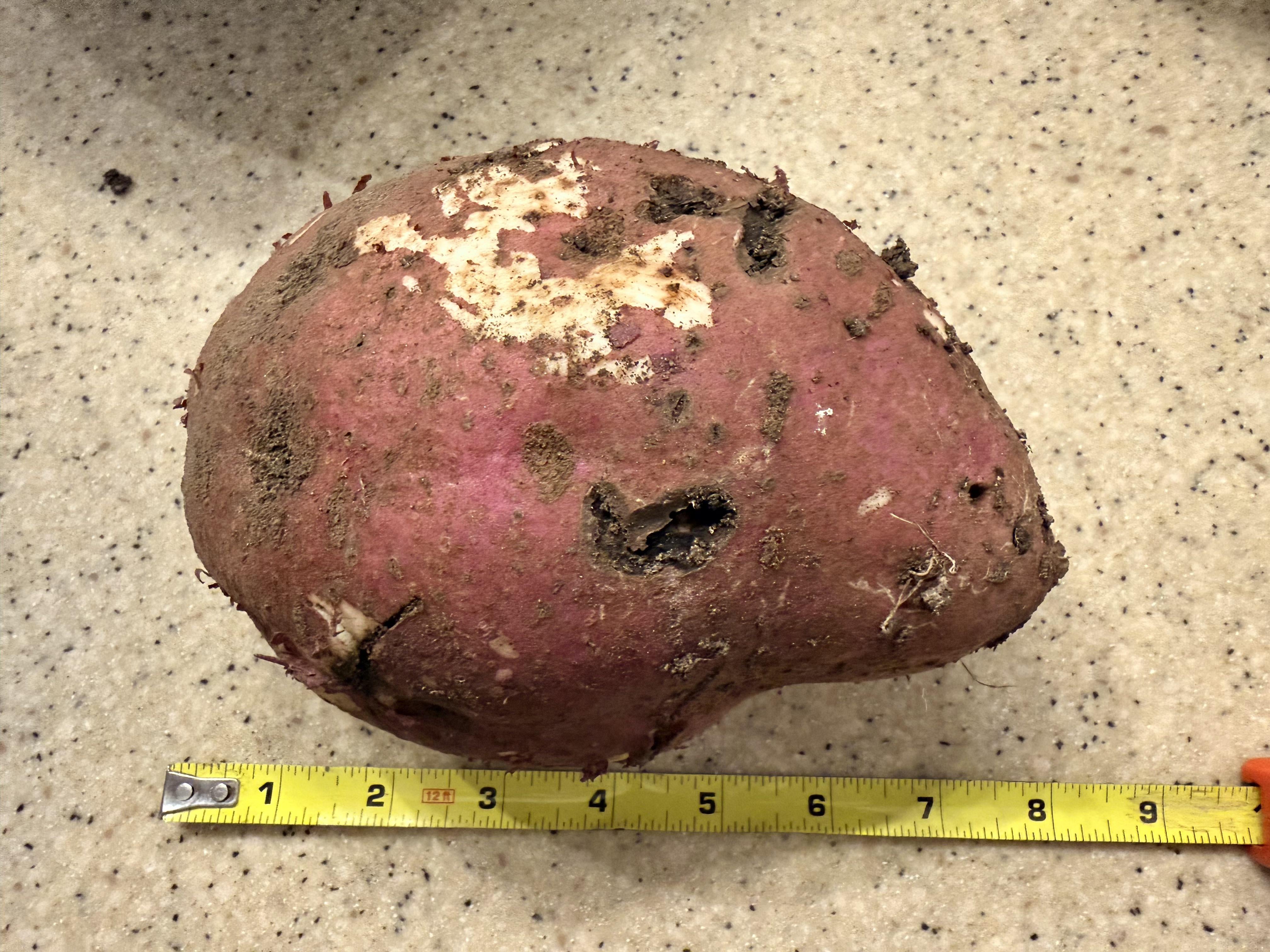 周囲16インチのボランティアのムラサキサツマイモ。箱にこのモンスターがいっぱい入っています! ホリデーギフトとしてスイートポテトパイをたくさん作ろうと思います 🥴