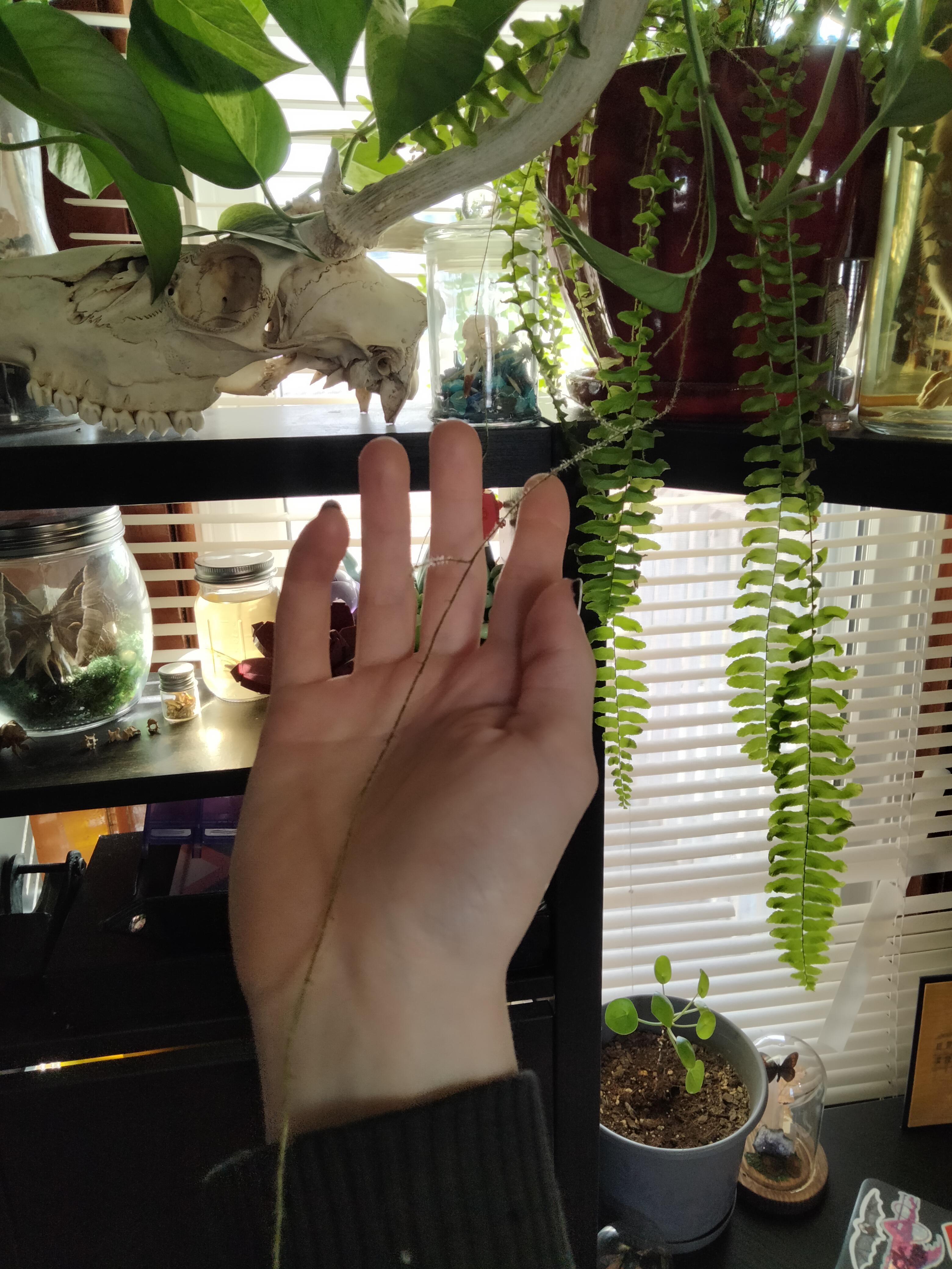 シダから奇妙な茎のようなものが生えていることに気づきました。最も長いものは私の腕とほぼ同じ長さです。これは根か何かでしょうか?