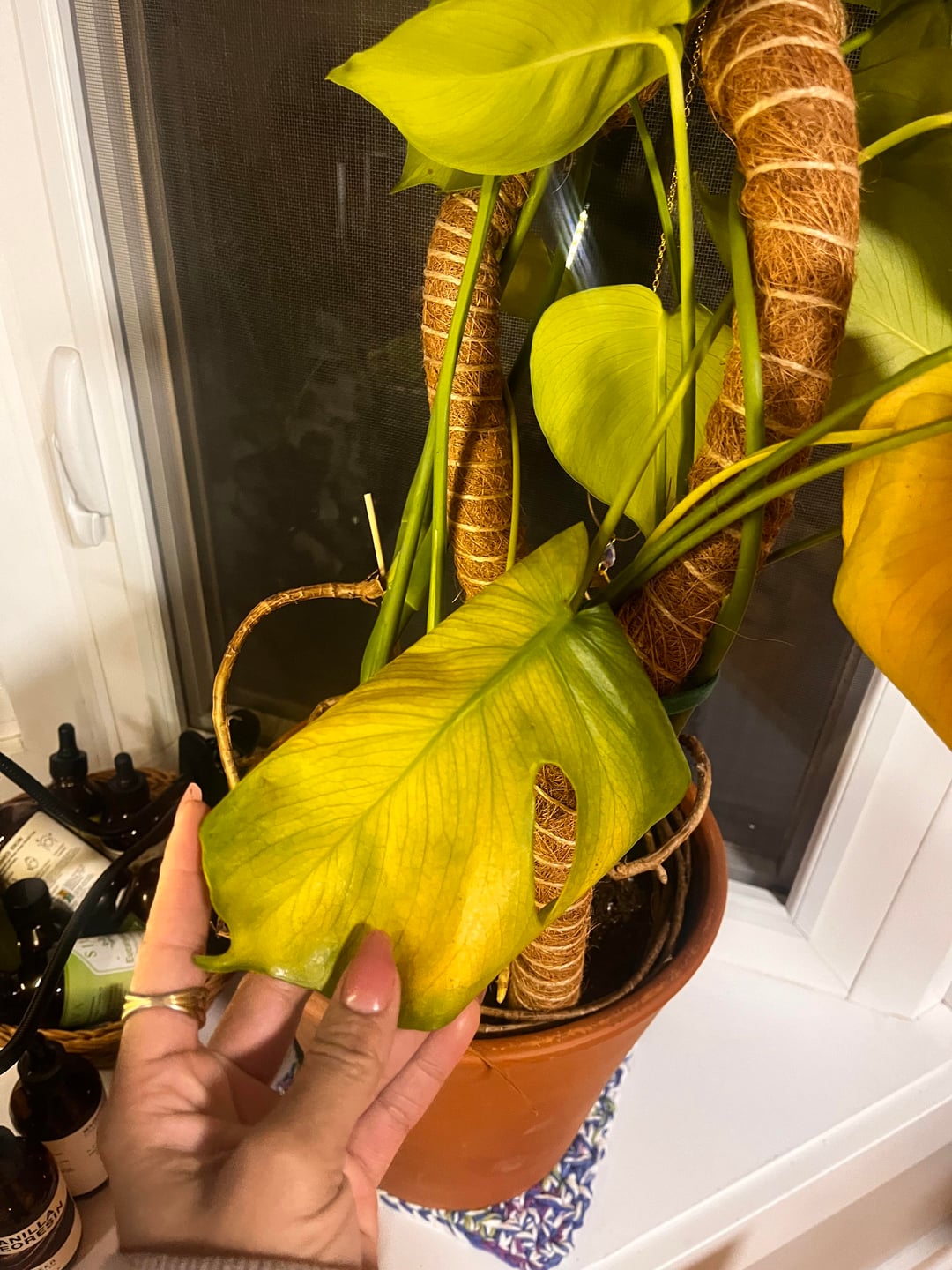 うちのモンステラは幸せではありません。土のせいなのか、光のせいなのか、それとも何なのかはわかりませんが、彼女は黄色くなっており、決して強くも元気にも見えませんでした。
