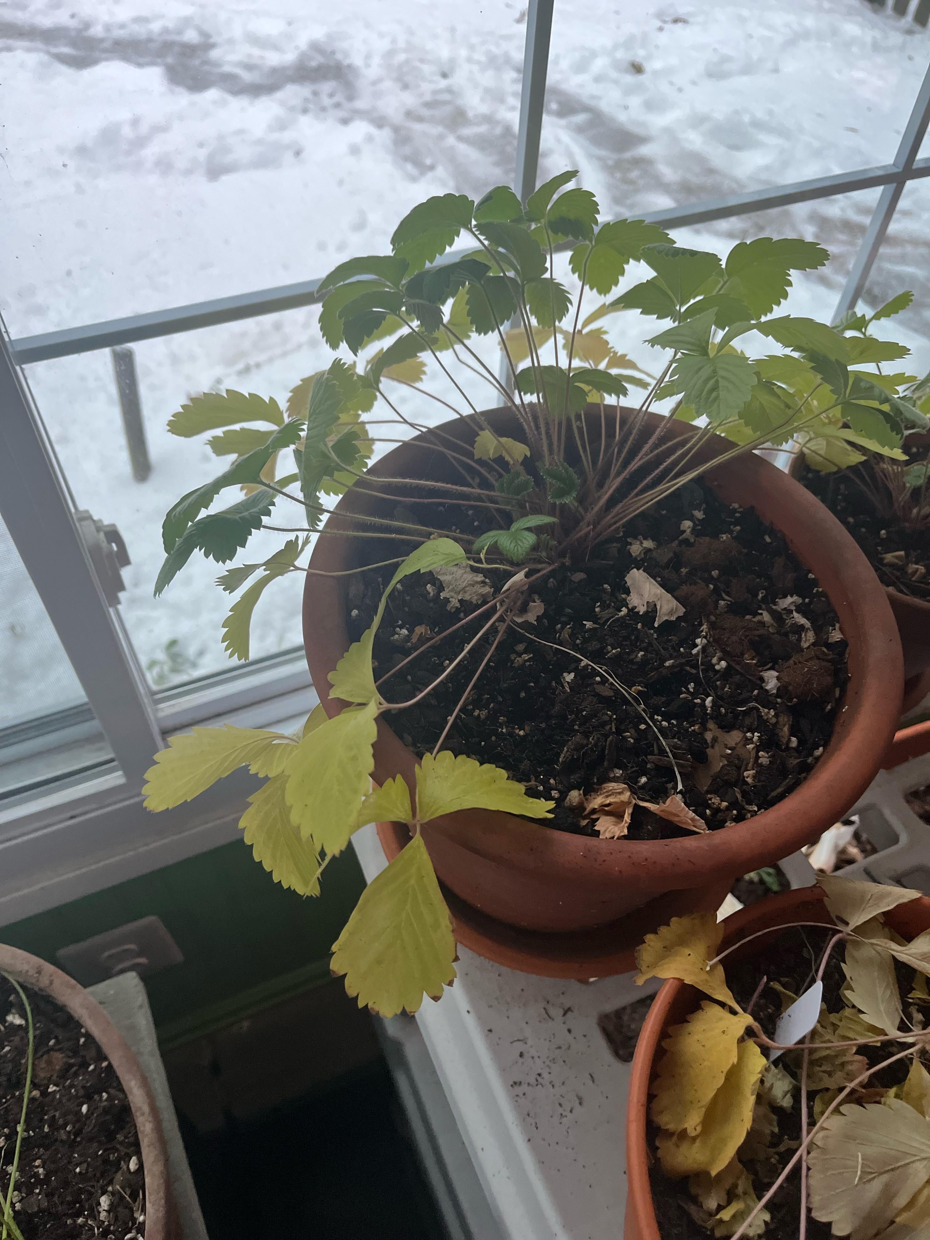 私のアルプスイチゴの植物に何が起こっているのか。小さくて濃い色の新しい葉が出てきて、古い葉が枯れていくのがわかります。