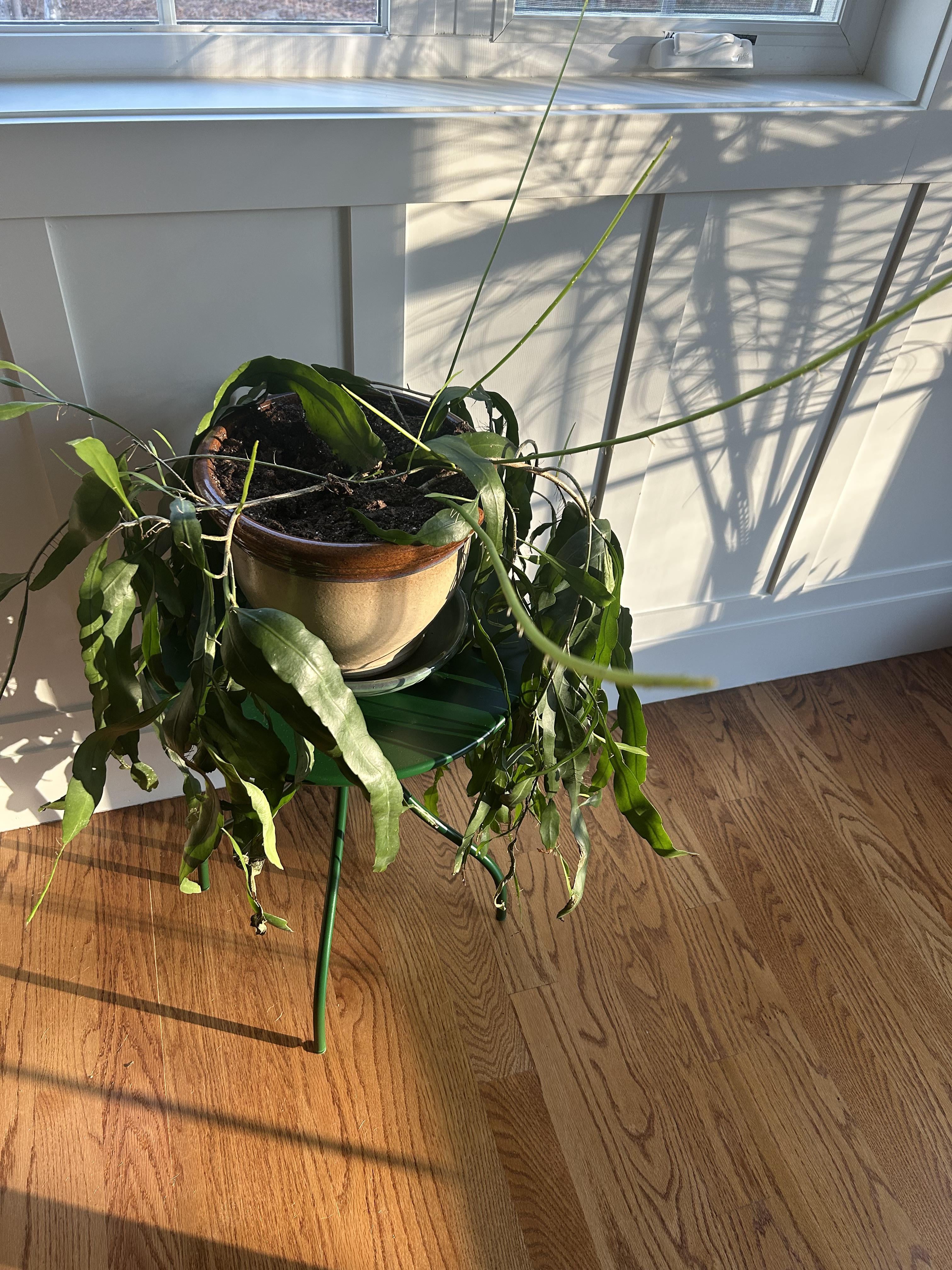 数か月前に事務所から大きな植物を持ち帰り、2つのプランターに分けました。どちらも順調ですが、こちらは大きな芽が出ています。これは何の植物かわかる人はいますか?